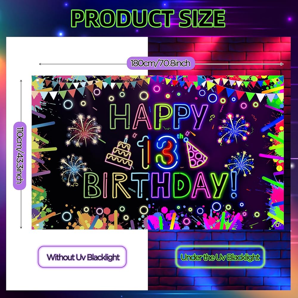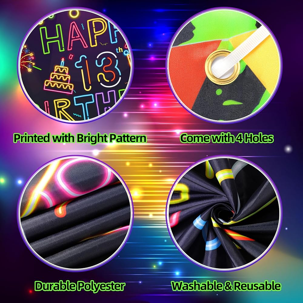 • ✨【Glowing Under Uv Blacklight】The glow neon 40th birthday decorations backgrounds are made of special polyester material, which will glow under the UV light, easy to clean, portable and reusable, creating amazing and charming visual effects for you