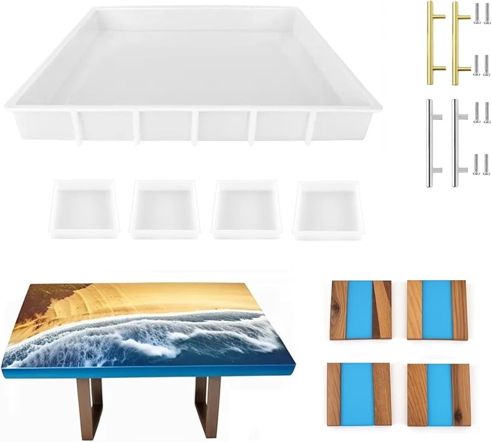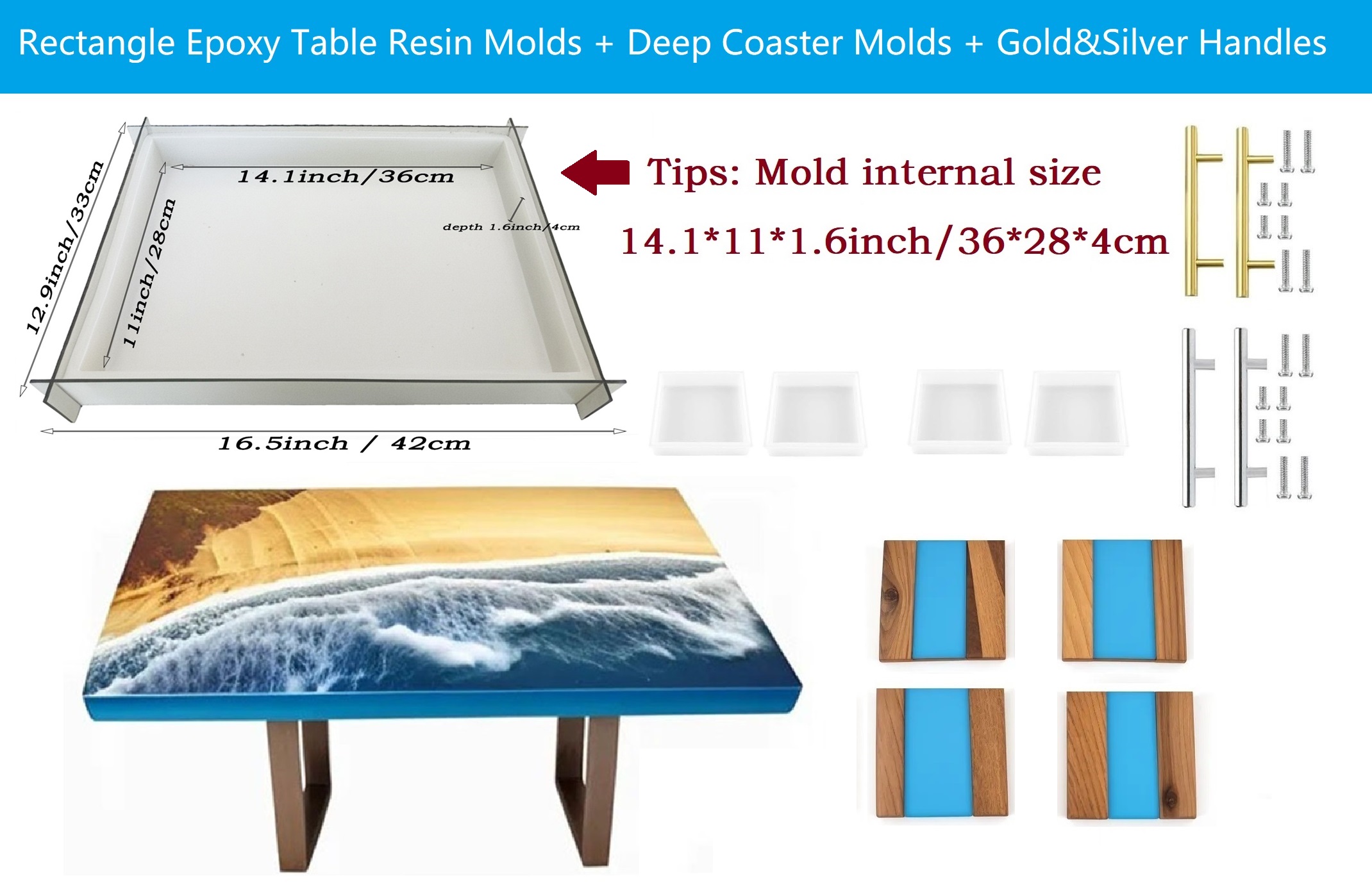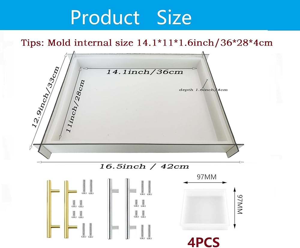 قالب سيليكون راتينج كبير للطاولة: سوف تحصل على قالب كبير مستطيل الشكل من الراتنج وإطار تثبيت. مجموعتان من المقابض، 4 قطع من قوالب الأكواب المربعة العميقة. حجم الإطار: 16 * 12 بوصة، قالب راتنج السيليكون العميق المستطيل الحجم الداخلي: 14.1 * 11 * 1.6 بوصة. تمت ترقية وتقوية حواف قالب راتينج البليت الكبير لمنع الاعوجاج. مناسبة للحرف اليدوية الفريدة من نوعها من الراتنج، وصواني كبيرة السمك، وطاولة القهوة، وألواح التقطيع، وصواني التقديم، وطبق الجبن، وديكورات المنزل.