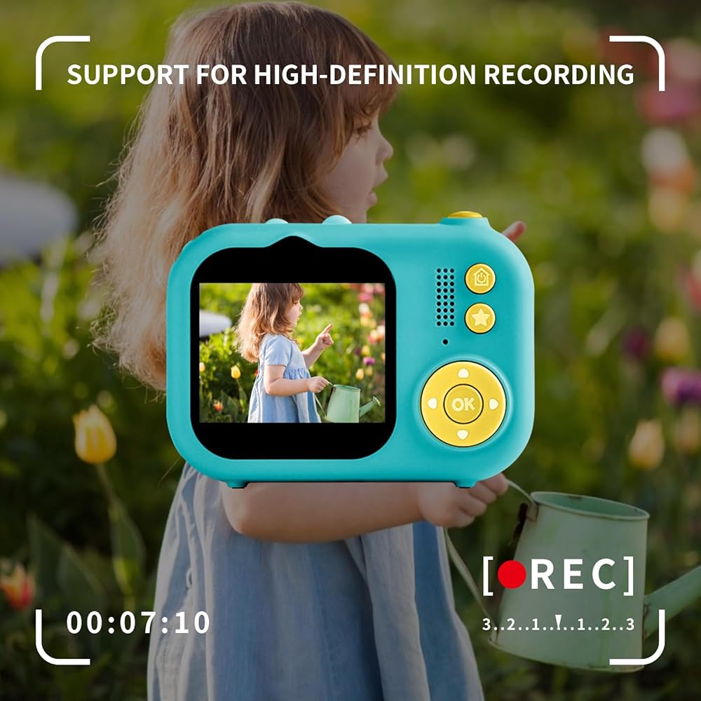 【آمنة ومتينة مقاومة للصدمات】تستخدم هذه الكاميرا بلاستيك ناعم عالي الجودة وغير سام، وأكثر أمانًا وراحة لبشرة الأطفال.
