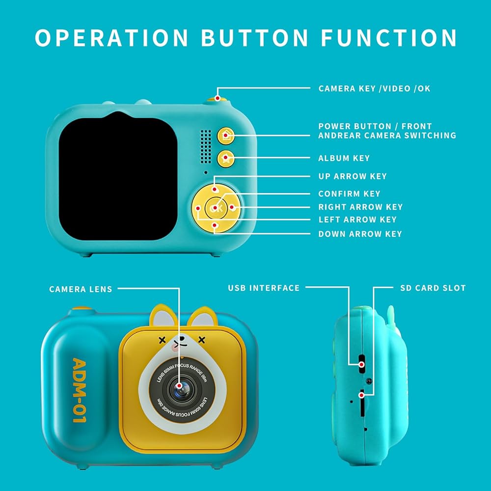 وظائف متعددة: توفر كاميرا الأطفال هذه المزيد من الوظائف بناءً على تسجيل الصور الأصلية، وتسجيل الفيديو، والتشغيل، وتسجيل الانفجار، والمؤقت الذاتي، والمرشحات الكلاسيكية، وإطارات الرسوم المتحركة اللطيفة. تأتي كل كاميرا أطفال مزودة ببطاقة Micro SD بسعة 32 جيجابايت. يمكن لأطفالك التقاط الصور في أي وقت وفي أي مكان. كما أن لديها ألعاب ألغاز مدمجة ويمكنها تشغيل الموسيقى.