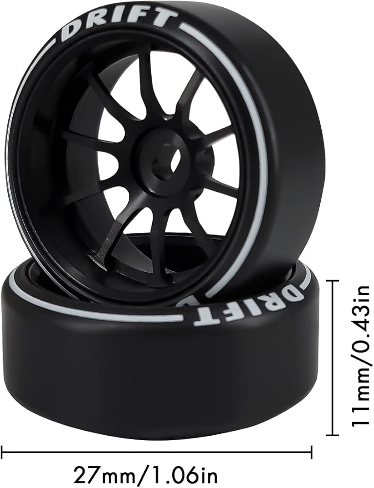 ● Big Size Wheels:Its out diameter is 27mm,it is bigger than normal wheels,suit for most 1/24 1/28 rc drift car like Mini-Q Mini-D Wltoys K989 K969 K979 P929 HGD1 HGV1