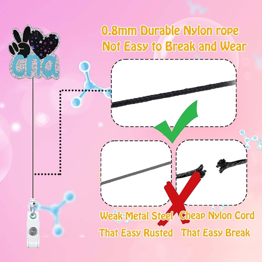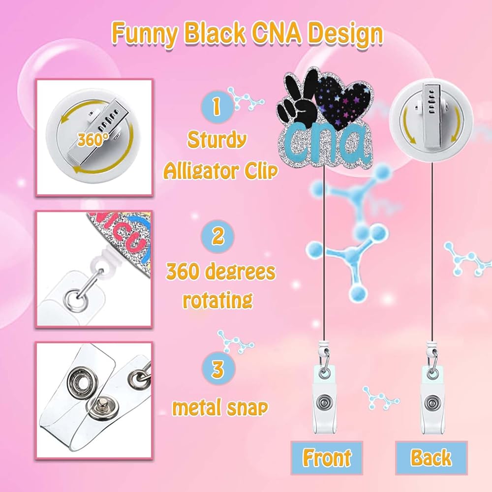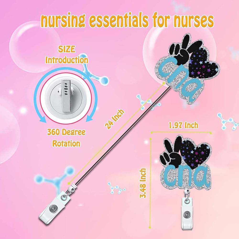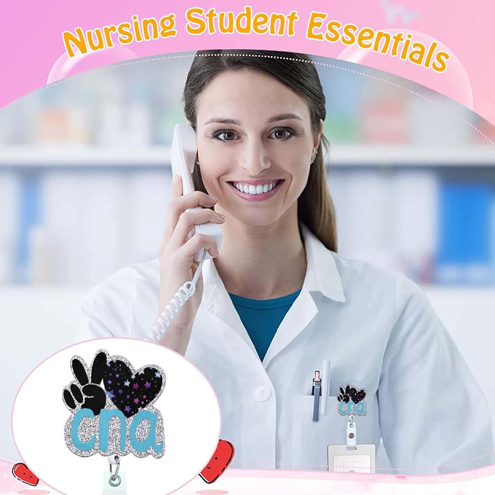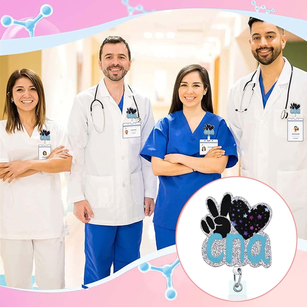 CNA شارة بكرة حامل مضحك ممرضة التمريض الطبية الاكريليك شارة بكرات قابل للسحب للممرضات لطيف بريق شارة كليب RN LPN LVN بطاقة الهوية الملحقات مساعد الهدايا