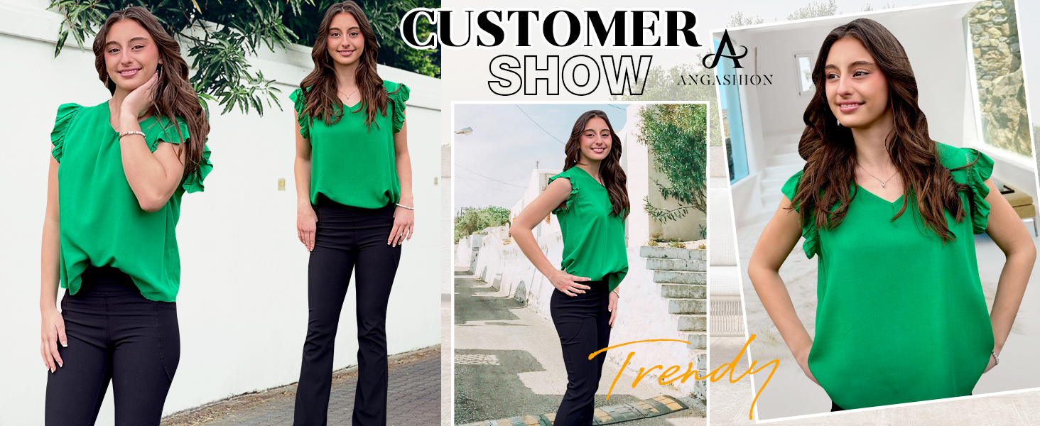 • قمصان نسائية برقبة على شكل حرف V: صُممت قمصاننا برقبة على شكل حرف V، ولا تضفي على شكل وجهك فحسب، بل تعمل أيضًا على إطالة رقبتك، وإظهار عظام الترقوة الرائعة للحصول على مظهر نحيف وأنيق.