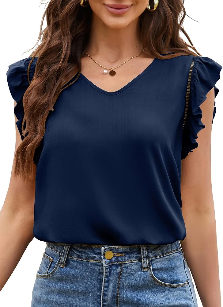 • قمصان صيف 2024: تتميز قمصاننا الصيفية النسائية لعام 2024 بأنها مجوفة وأكمام قصيرة وزخرفة مكشكشة رقيقة، وتضيف قمصاننا لمسة من الأناقة والمرح إلى ملابسك. اللون الصلب يسمح بسهولة الاقتران مع الملحقات، مما يوفر مظهرًا أنيقًا وفريدًا.