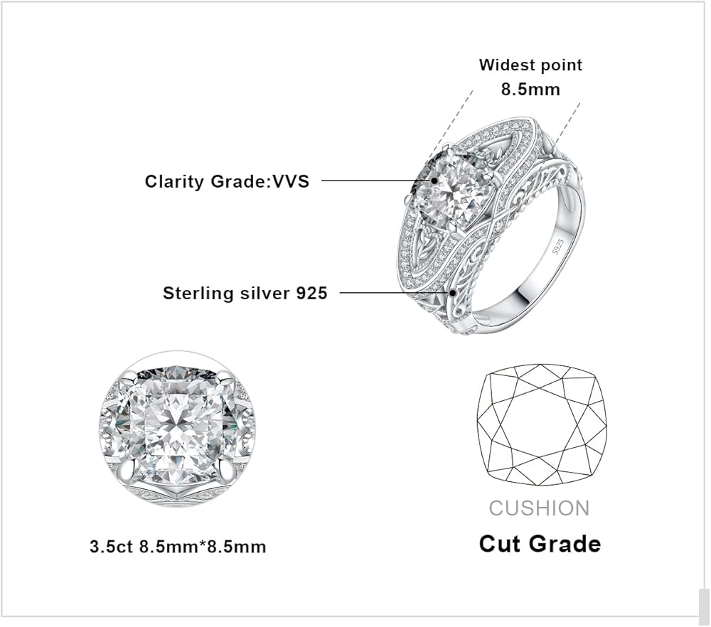 • √ خاتم فضة استرلينية عيار 925 مكعب AAA عالي الجودة: خاتم الوعد العتيق 3.5 قيراط للنساء مصنوع من الفضة الإسترلينية S925 الصلبة. الفضة الإسترلينية الموجودة في خاتم الخطوبة النسائي الخاص بنا مقاومة للتشوه، مما يضمن عدم وجود بقايا تشويه على الجلد. يوفر طلاء الروديوم بريقًا يدوم طويلاً ويجعل Anillos de Plata 925 للنساء مقاومًا للتشوه! لا يسبب الحساسية تمامًا، وخالي من الحساسية، وخالي من النيكل، وخالي من الرصاص، و.