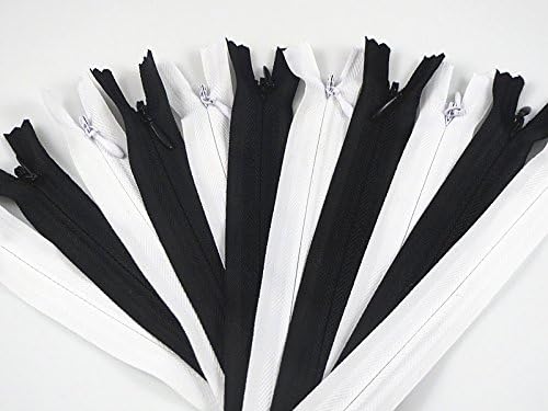 30 قطعة من سحابات النايلون غير المرئية من ياكا، أدوات الخياطة، إكسسوارات الملابس، سحابات غير مرئية مقاس 9 بوصة، لون أسود، لون أبيض (مزيج)