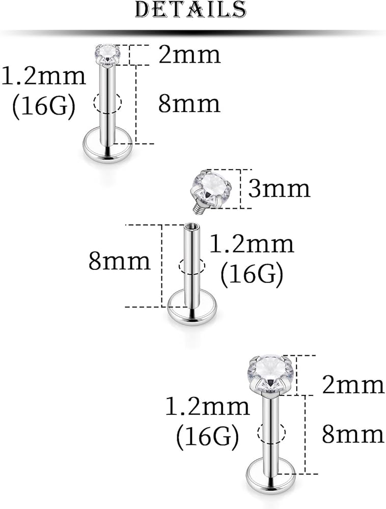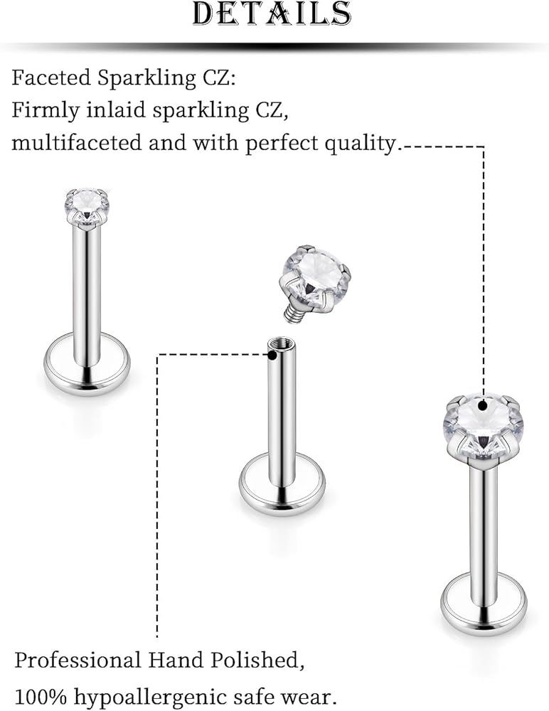 [خامة علوية] مسامير مجوهرات لابريت بيرسنج مصنوعة من الفولاذ المقاوم للصدأ بدرجة 316L الجراحية وAA+ CZ، لا تسبب الحساسية وغير نيكل، غير ضارة لبشرتك، مناسبة للجسم الحساس، سطح فائق النعومة ولامع. إنه خيار صحي بالنسبة لك.