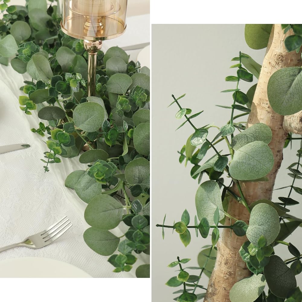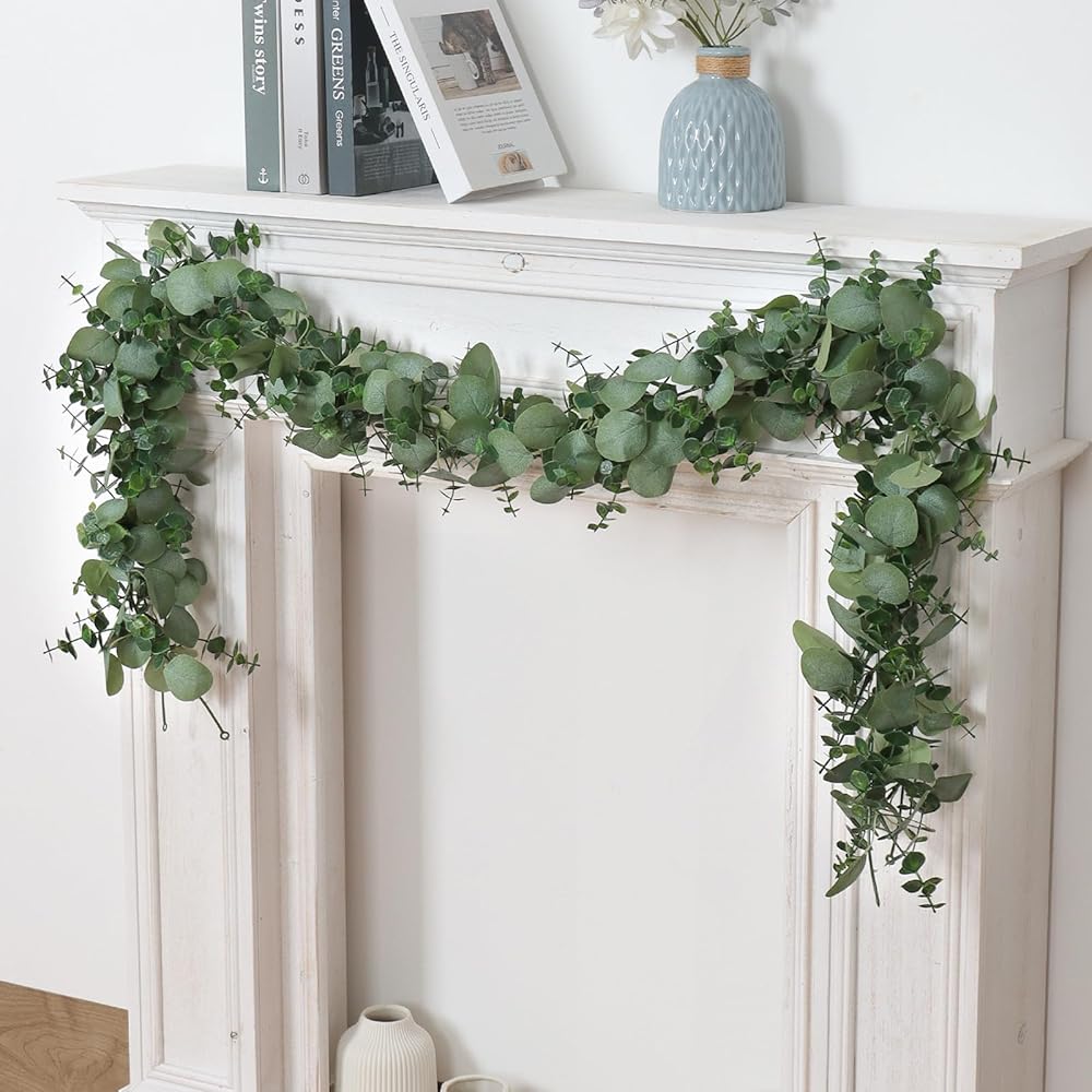 【خامة عالية الجودة】كرمة الأوكالبتوس الفضية مصنوعة من أوراق حريرية عالية الجودة وكرمة بلاستيكية، وتتميز الأوراق بملمس شفاف وبألوان طبيعية. من أجل جعل المنتجات أكثر واقعية، نواصل تحديث تقنية زراعة المسحوق، وأدركنا أخيرًا أن المنتجات باللون الأخضر الفاتر تمامًا مثل النباتات الحقيقية دون غبار متطاير. تتميز أكاليل الأوكالبتوس هذه بوظيفة مقاومة للأشعة فوق البنفسجية وغير سامة ومقاومة للماء. . يتم تجميع كل ورقة يدويًا ويمكنك وضعها مرة أخرى في حالة سقوط بعض الأوراق.