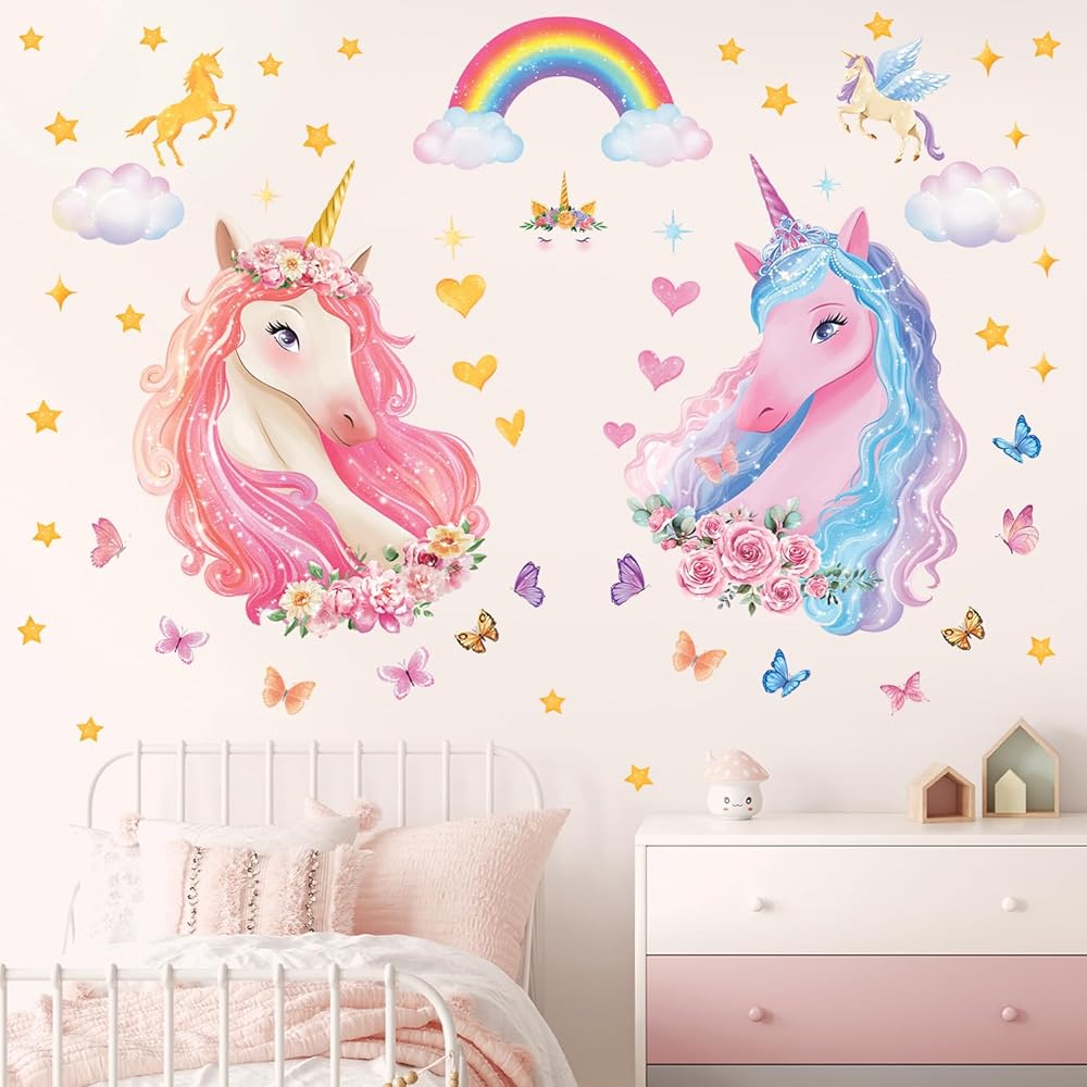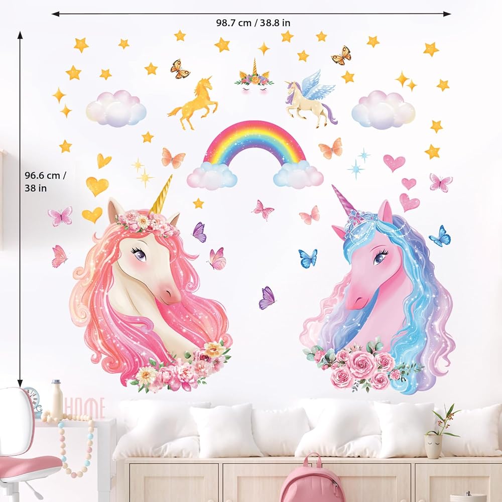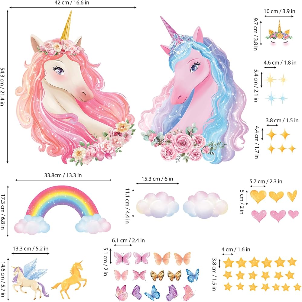 DECOWALL SG2-2322 ملصقات جدار جميلة يونيكورن يونيكورن قوس قزح نجوم فراشة جدار الشارات للأطفال الفتيات غرفة الطفل لغرفة نوم الحضانة غرفة المعيشة ديكور الفن عيد ميلاد قابل للإزالة