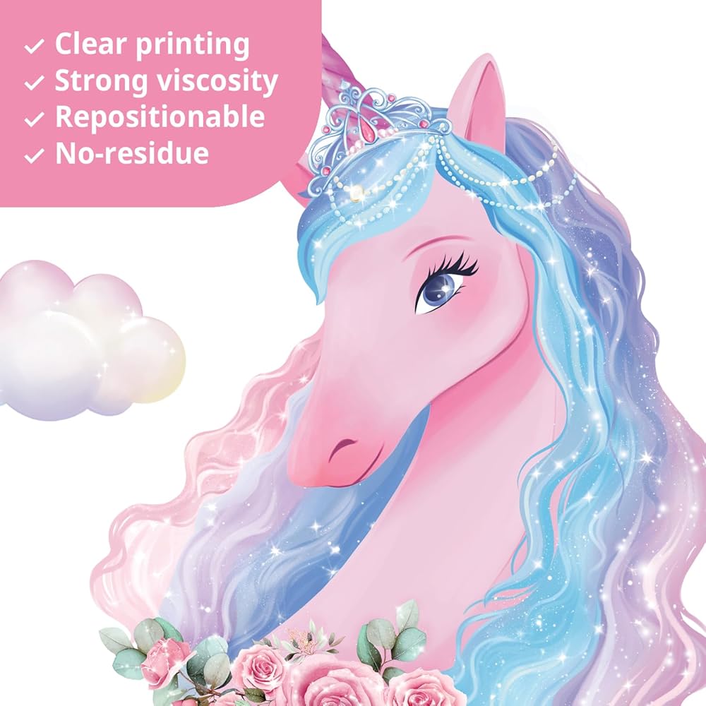 مثالي لطفلك: يُعد ملصق الحائط الكبير الجميل وحيد القرن مثاليًا لتزيين غرف الأطفال وغرف الأطفال وغرف الأطفال وغرف اللعب وغرف النوم وغرف المعيشة والحمامات والممرات.