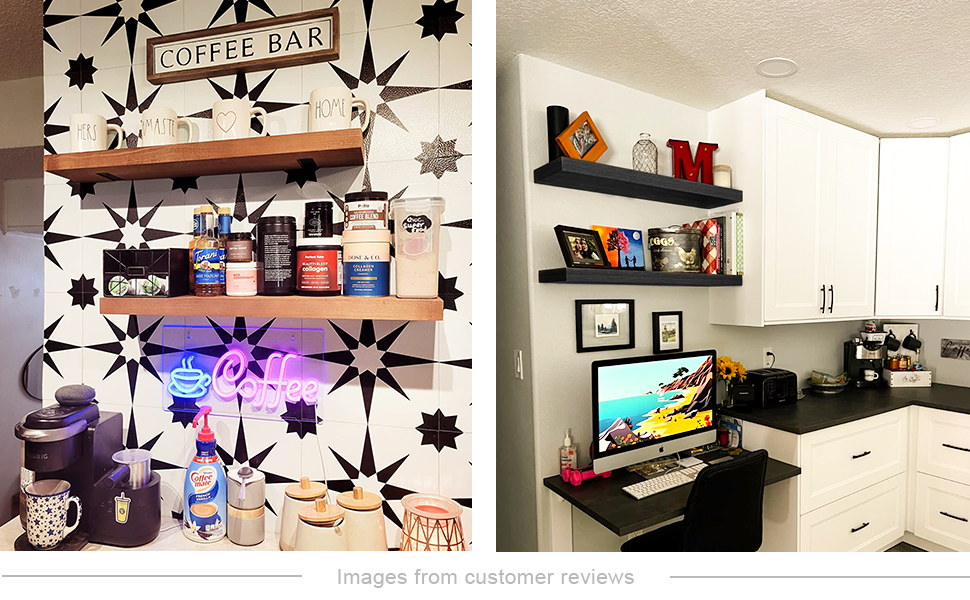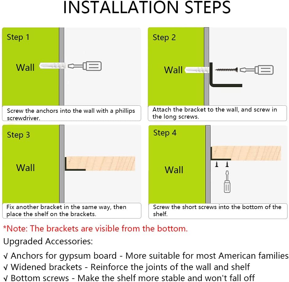 ثابت - رف سميك مقاس 1.6 سم، يزيد من الثبات على الحائط. بالإضافة إلى ذلك، تعمل الدعامات الواسعة على تعزيز مفاصل الجدار والرف، بينما تجعل البراغي السفلية الرف أكثر استقرارًا ولن يسقط.