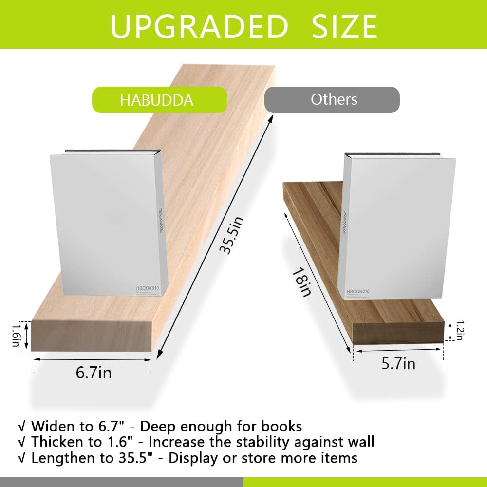 تمت ترقيته - يمتد إلى 6.7 بوصة، وعميق بما يكفي للكتب. ويمتد إلى 35.5 بوصة، حتى تتمكن من عرض أو تخزين المزيد. مثبتات مرفقة للجبس بورد، مناسبة لمعظم العائلات الأمريكية.