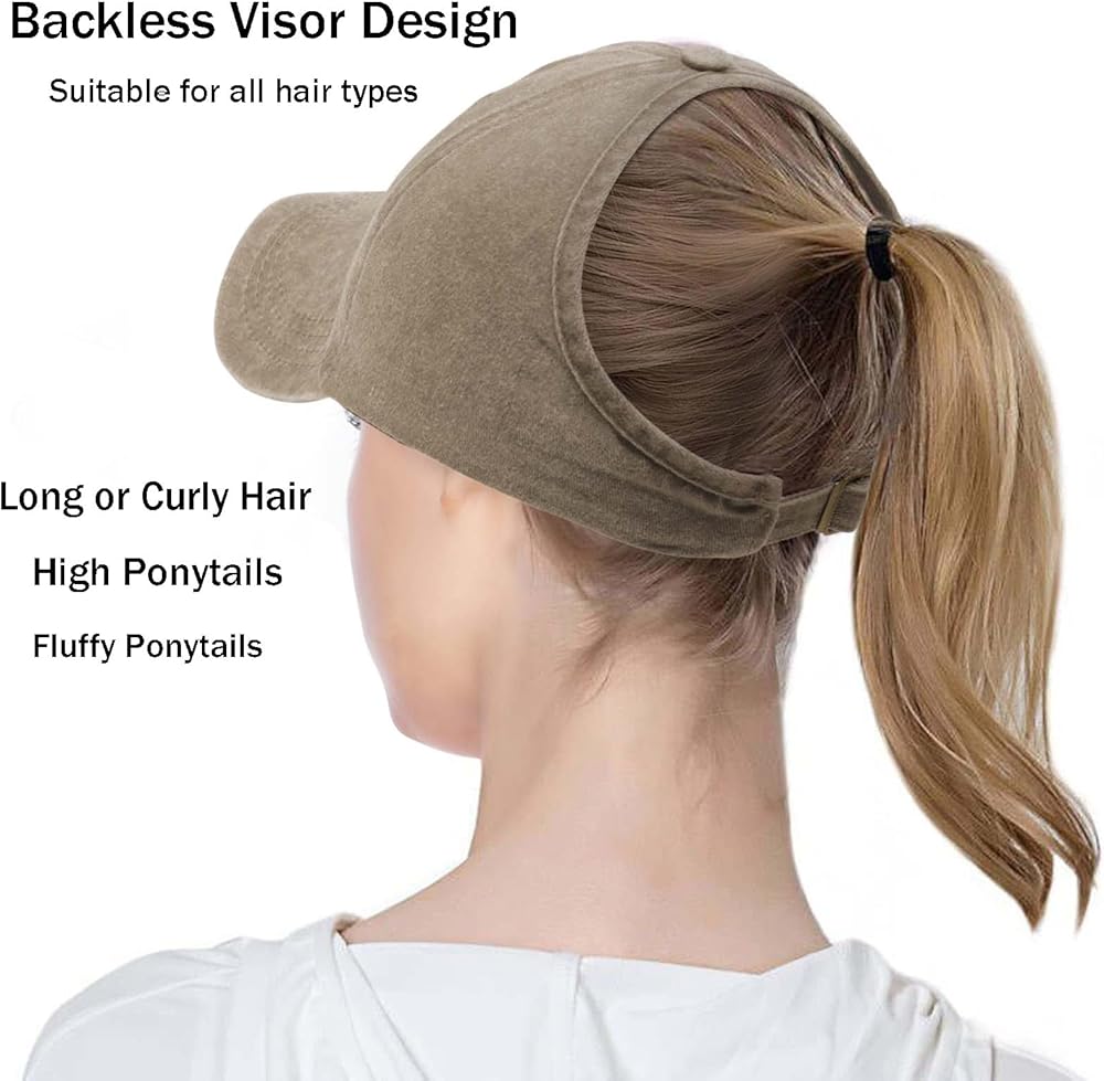 • 【Backless Cap Design】:This women ponytail baseball cap is designed with backless,which is light, breathable and comfortable;Its distinctive open back structure is Suitable for all hair types,especially loved by women who with long or curly hair,high ponytails, fluffy ponytails,which is the ideal hat for ponytails, let you look more alive and energetic.