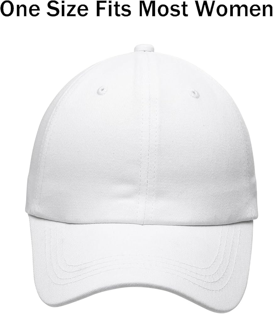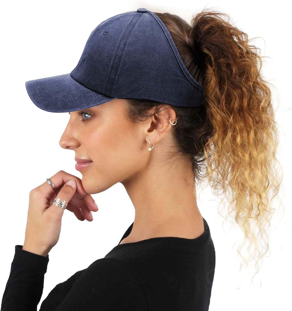 • 【One Size Fits Most】:The back of the cap is made of adjustable metal buckle, which is convenient and quick to adjust the size; It is suitable for people with a head circumference of approx. 21.6-22.8 inches;Suitable for most people to wear, and half empty design, suitable for all horsetails.