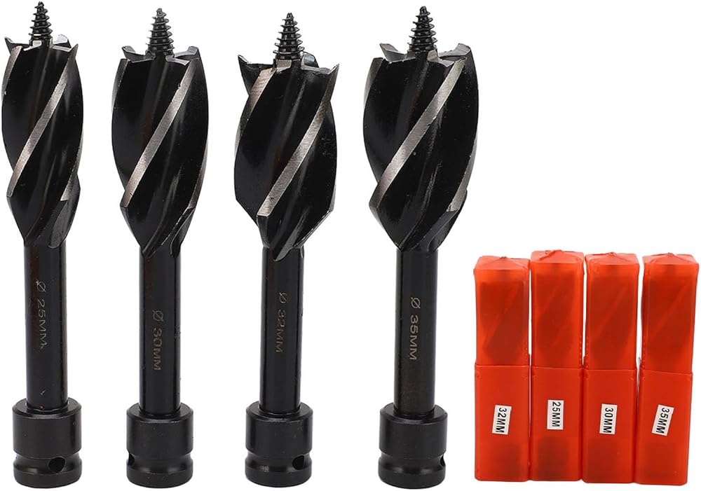 1. مجموعة مكونة من 4 قطع: تشتمل مجموعة رؤوس المثقاب هذه على 4 أحجام، 25 مم، 30 مم، 32 مم، و35 مم، مما يوفر لك حلاً متعدد الاستخدامات لاحتياجات الحفر المختلفة.