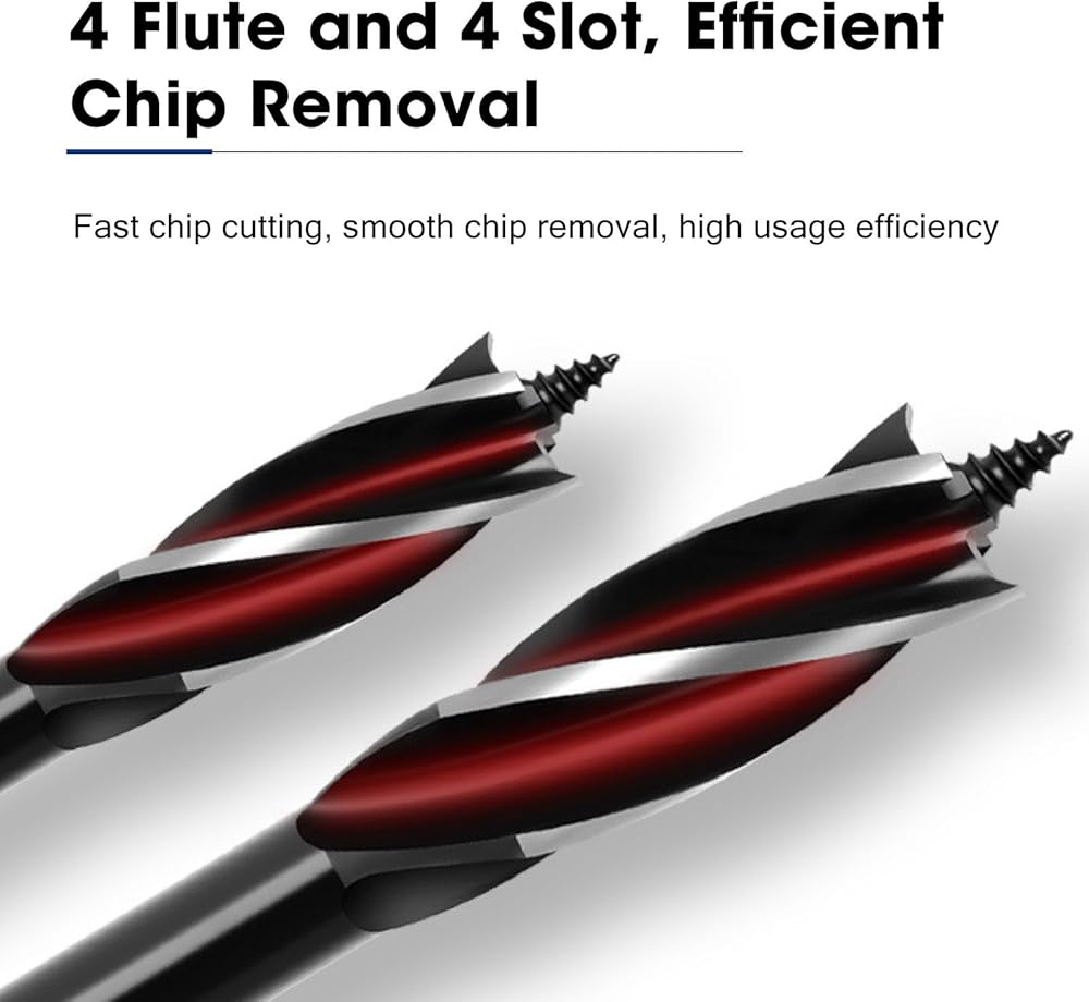 كفاءة عالية: تتميز هذه القطع الخشبية بـ 4 مزامير و4 فتحات، مما يتيح إزالة الرقائق بكفاءة، مما يقلل من الانسداد، ويوفر حفرًا أسرع وأكثر نظافة.
