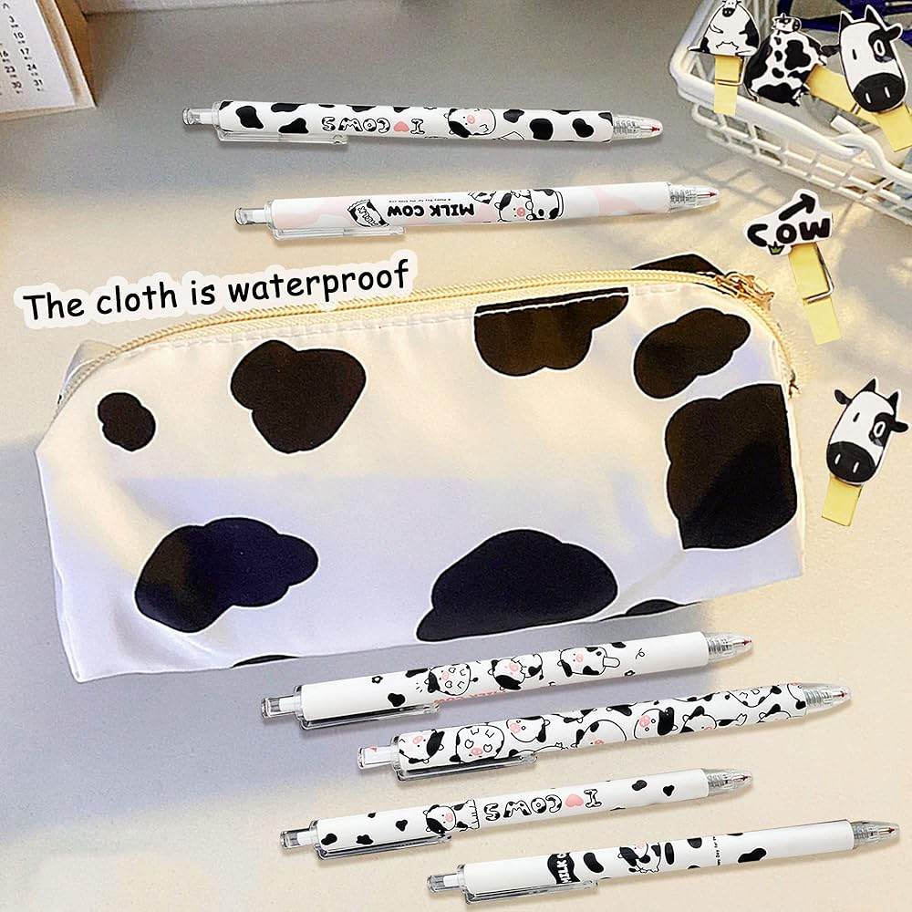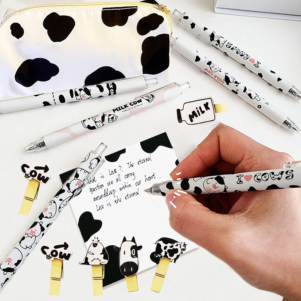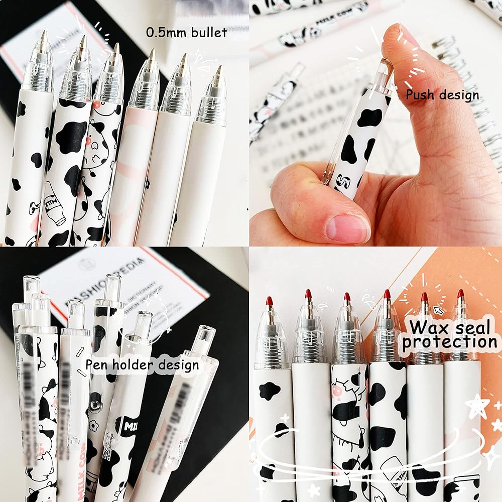 قلم بقرة الحليب: أقلام الحبر الجل السوداء البقرية هذه مقاس 0.5 مم سهلة الإمساك ومريحة في الإمساك باليدين، لذلك لن تشعر بالتعب حتى عند الكتابة لفترة طويلة، مما يمنحك تجربة كتابة لطيفة
