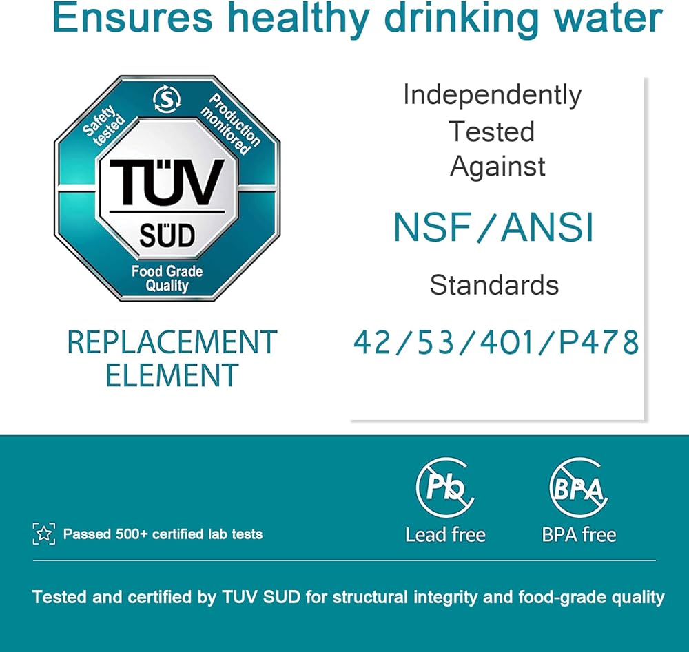 【اختيار فعال من حيث التكلفة 】وفر ما يصل إلى 160 زجاجة بلاستيكية تستخدم مرة واحدة لكل فلتر أو ما يصل إلى 2500 زجاجة سنويًا عند الاستمتاع بالمياه المذاق 0 TDS.