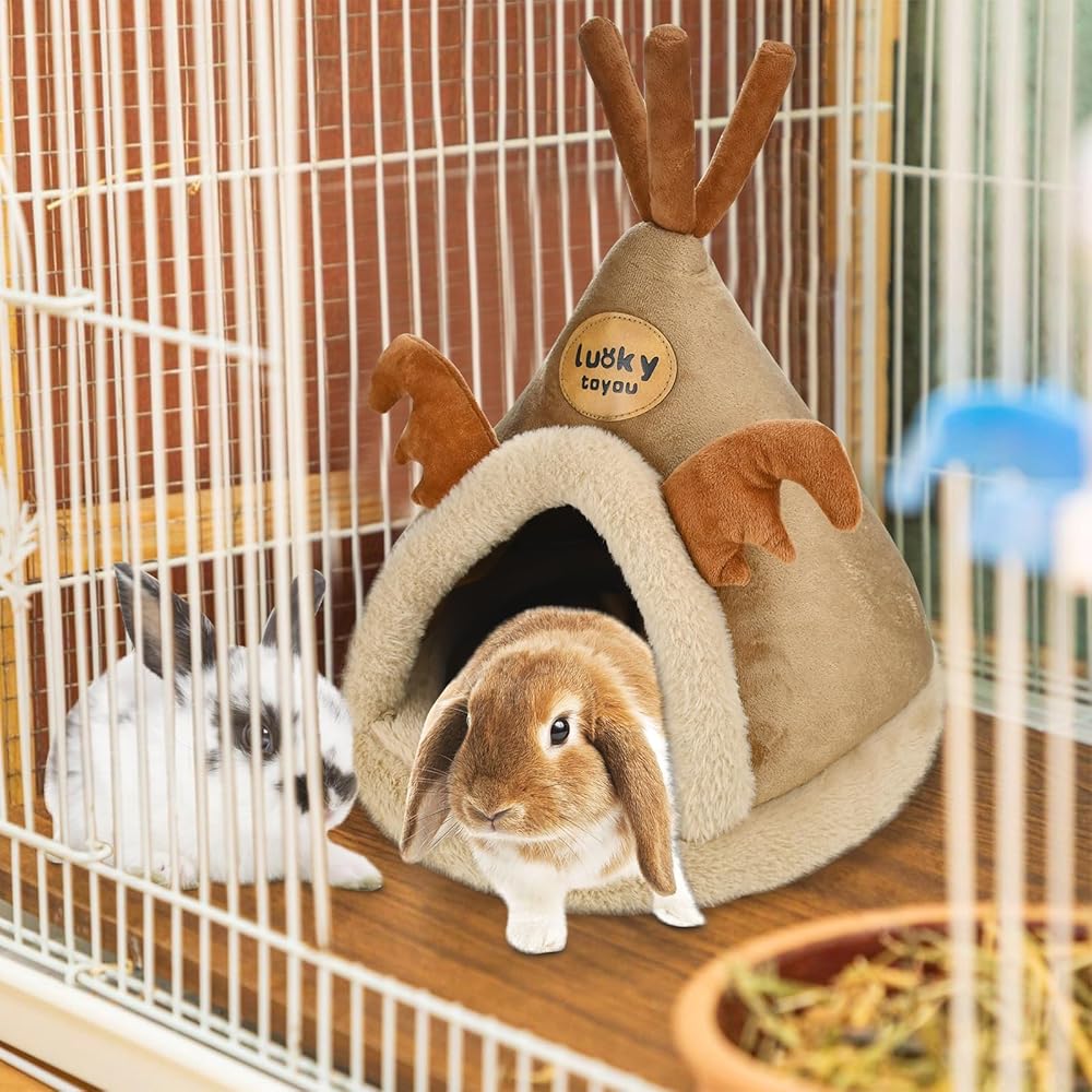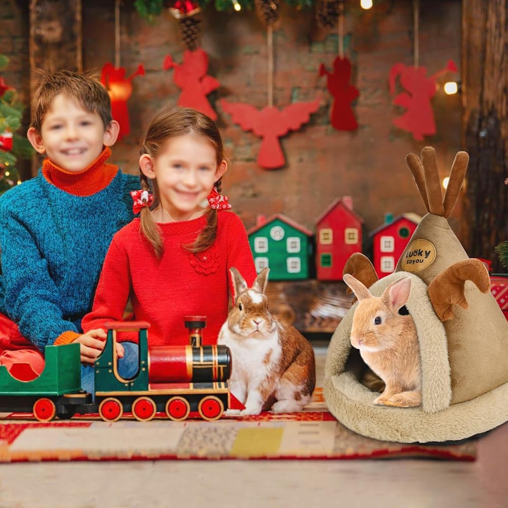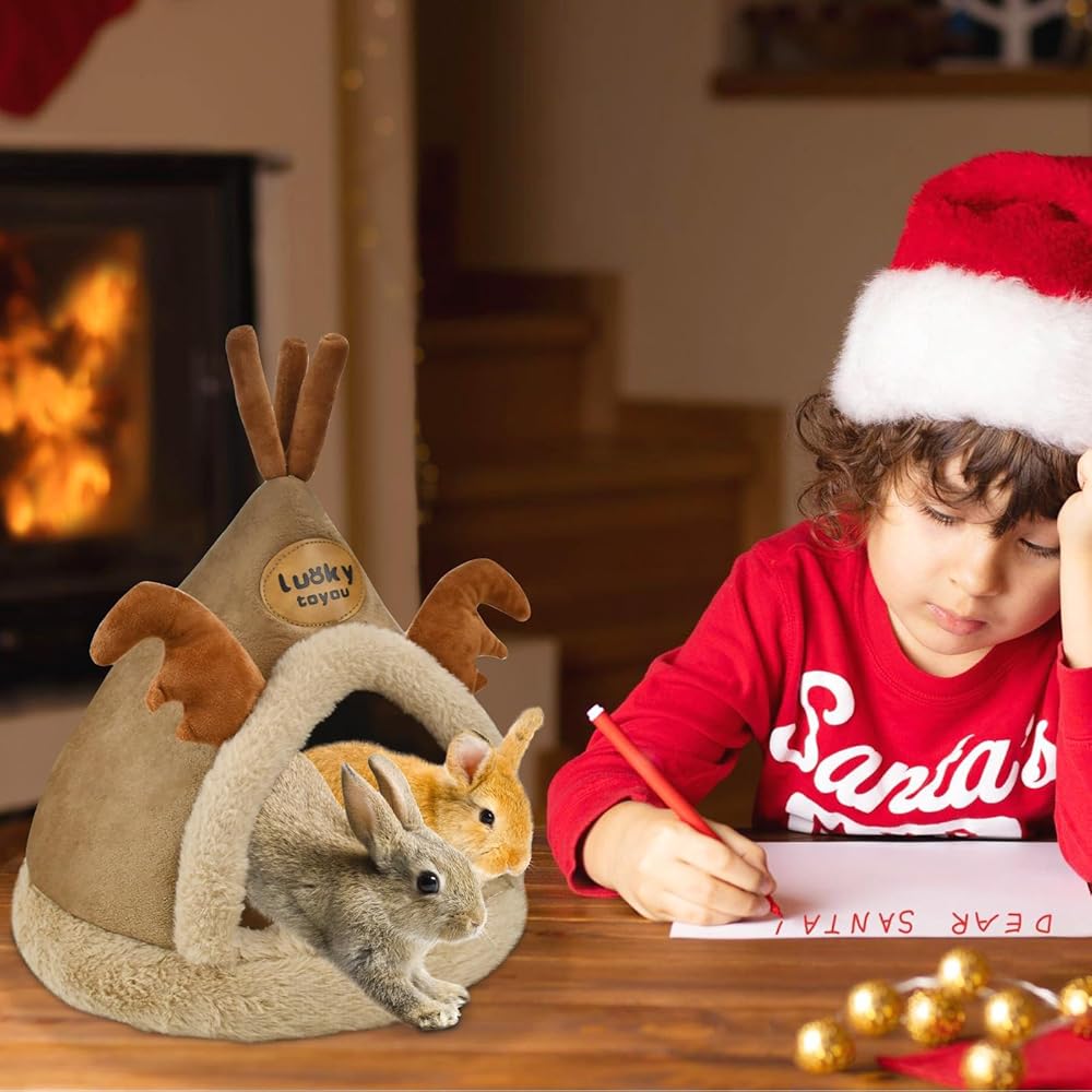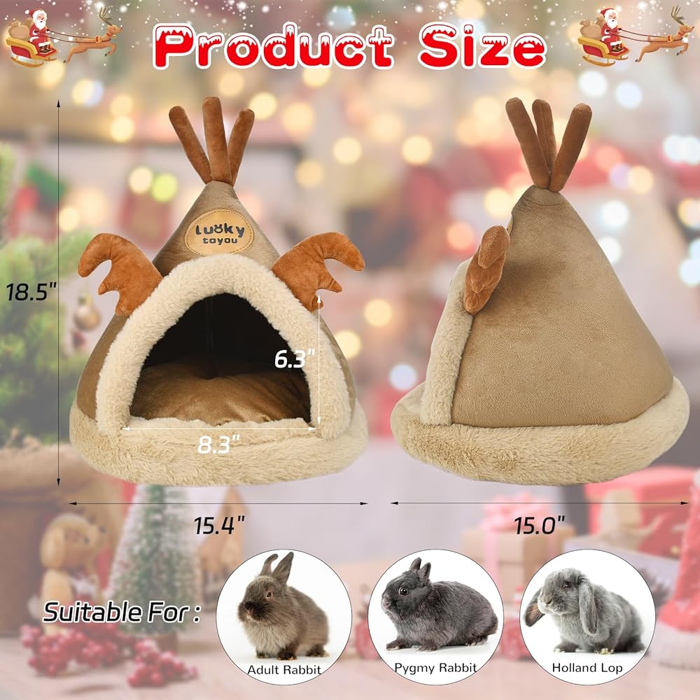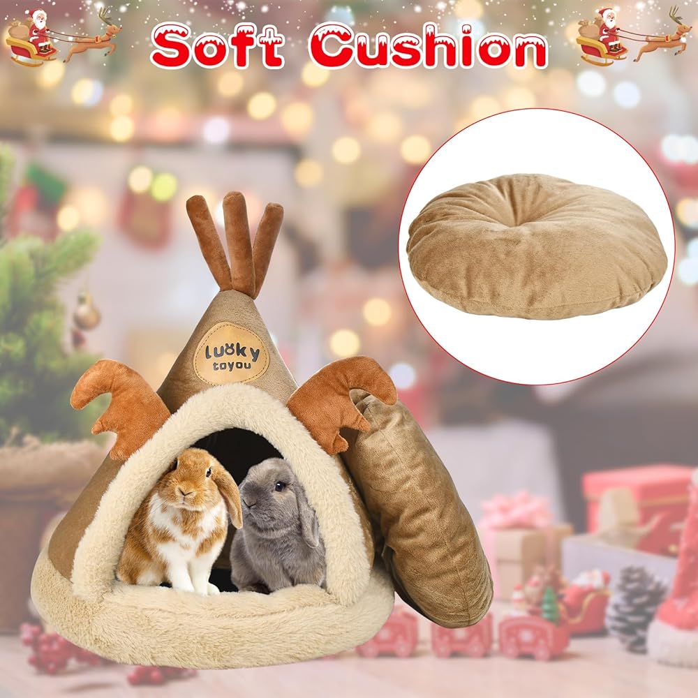 الأرنب عيد الميلاد سرير أرنب إخفاء منزل دافئ الحيوانات الصغيرة الغزلان القرن خيمة سرير قابل للغسل قفص الملحقات للأرنب غينيا خنزير السنجاب السكر طائرة شراعية