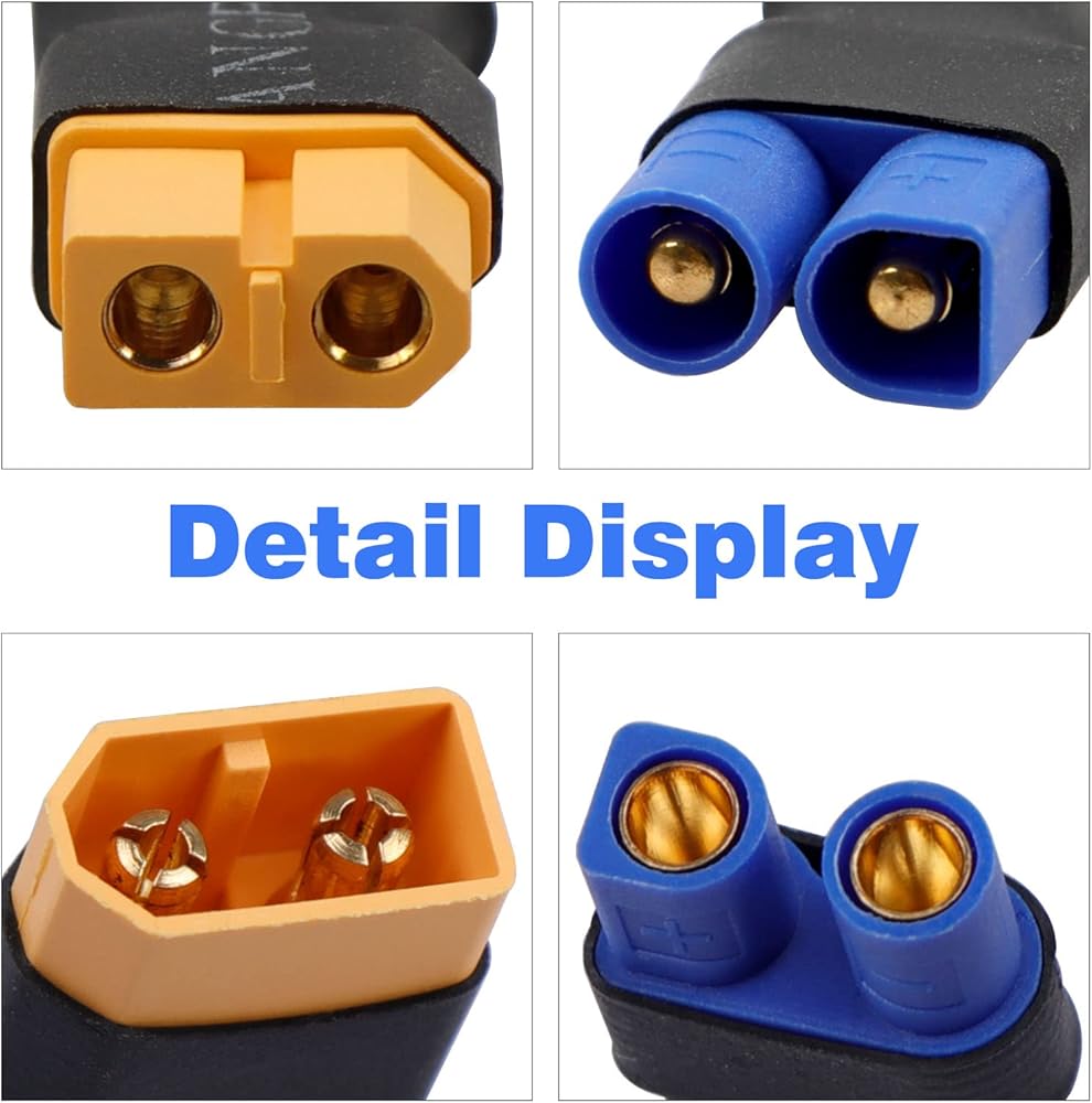 4-Pack XT60 to EC3 Connector Wireless Adapters for RC Car Plane FPV Drone Lipo Battery Charger ESC
