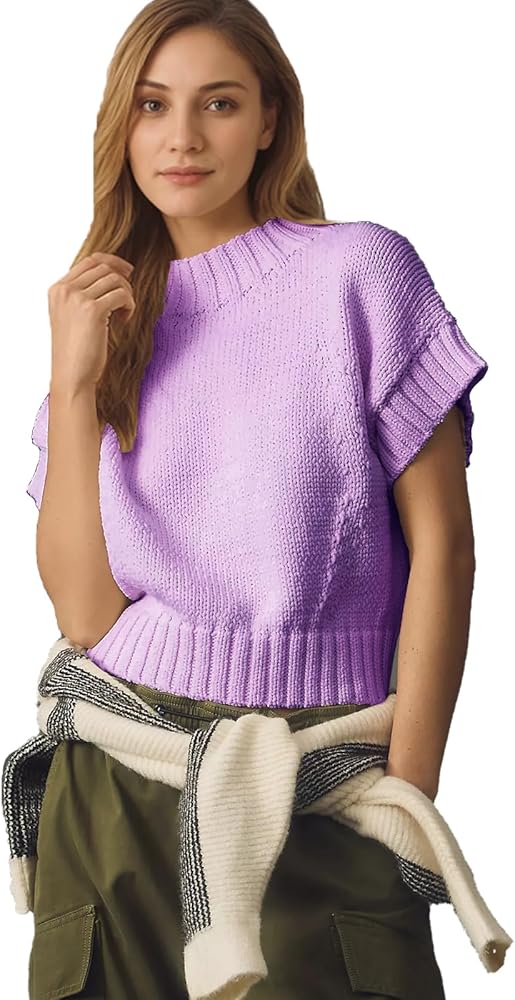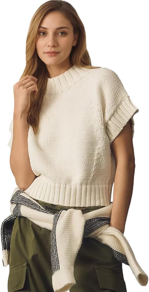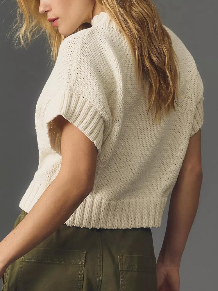 إغلاق بالسحب/ياقة مضلعة، أساور الأكمام والحاشية/مقاس فضفاض، سترة كبيرة الحجم ناعمة للغاية وكاجوال/سترات ربيعية للنساء، يسهل ارتداؤها مع السراويل أو التنانير لمظهر أنيق، سترة جذابة بأكمام قصيرة ومتماسكة كابل، كاجوال و قمة متماسكة جميلة