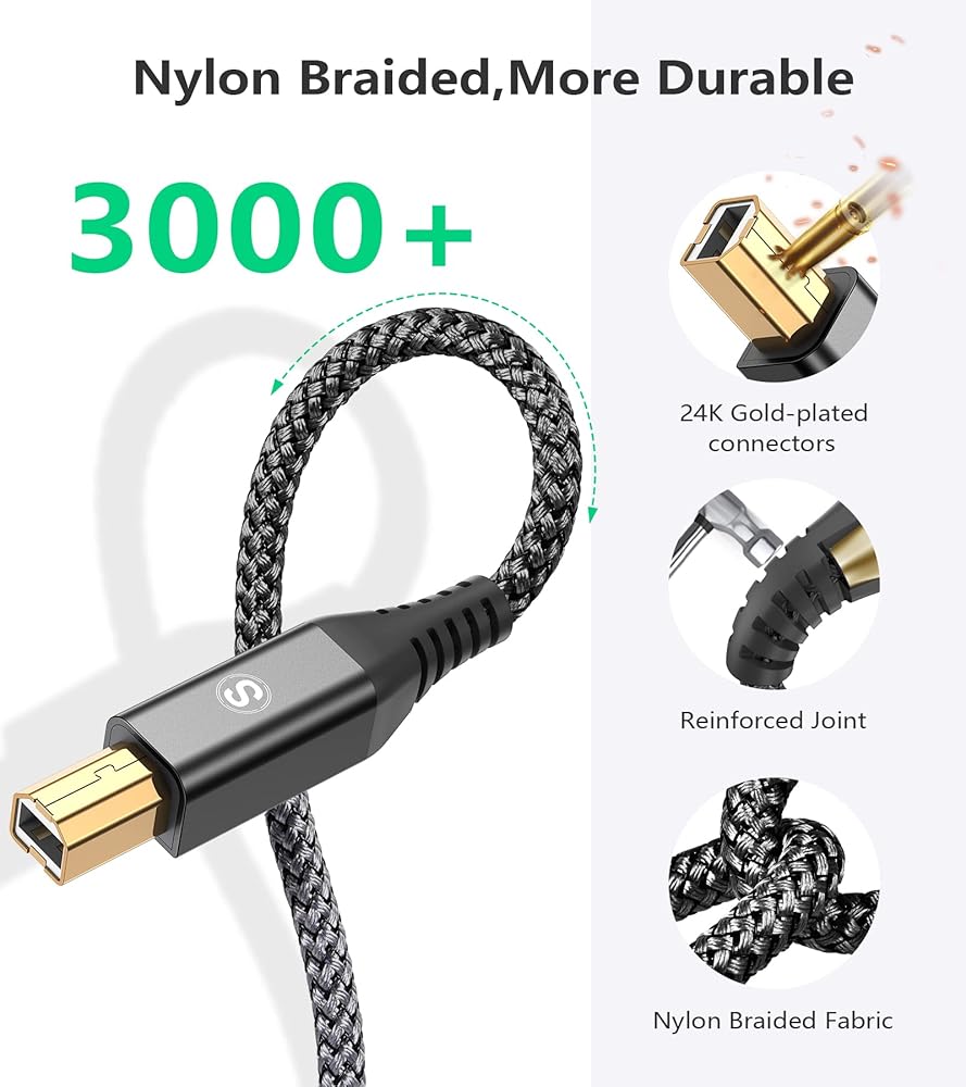 • 💪 [متين للغاية]: مصنوع من موصلات مطلية بالذهب مقاومة للتآكل للحصول على وضوح مثالي للإشارة وحماية لتقليل التداخل، مما يوفر أداء نقل أفضل، واستمتع بنتائج طباعة مستقرة وواضحة. تصميم مجدول من النايلون الممتاز الخالي من التشابك، مما يجعل الكابل خاليًا من التشابك، وأكثر متانة، وأقوى من أجل عمر أطول.