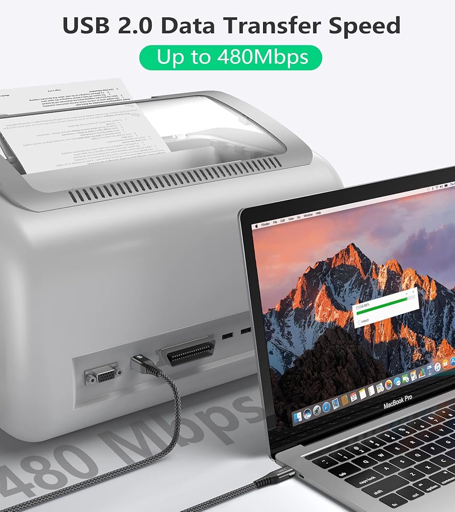• ⚡ [نقل عالي السرعة]: ما يصل إلى 480 ميجابت في الثانية ينقل سرعة البيانات لأجهزة USB 2.0، كابل الطابعة متوافق مع USB 1.1 كامل السرعة (12 ميجابت في الثانية) وUSB 1.0 منخفض السرعة (1.5 ميجابت في الثانية)، مقارنةً باتصال WIFI يوفر كابل USB B هذا نقل بيانات أكثر استقرارًا ويوفر طريقة عمل أكثر كفاءة لك.