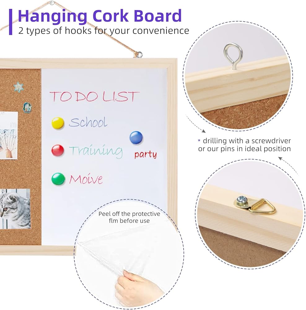 • 📌لوحة مزدوجة الأغراض - تعتبر لوحة الفلين مثالية لنشر الملاحظات والصفحات والمستندات والصور والرسوم البيانية والبطاقات. السبورة البيضاء سهلة الكتابة والرسم والتعلم.