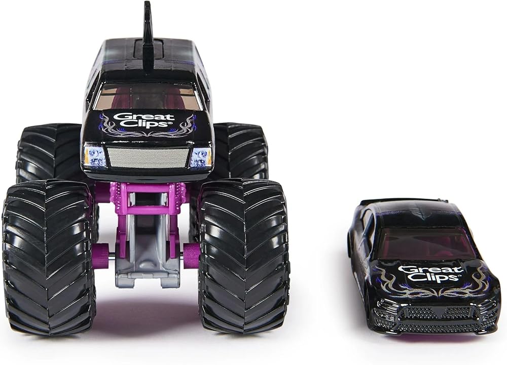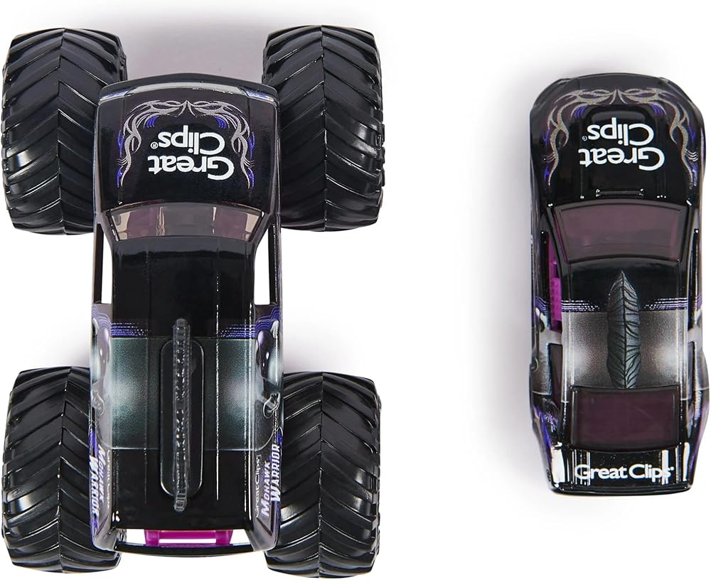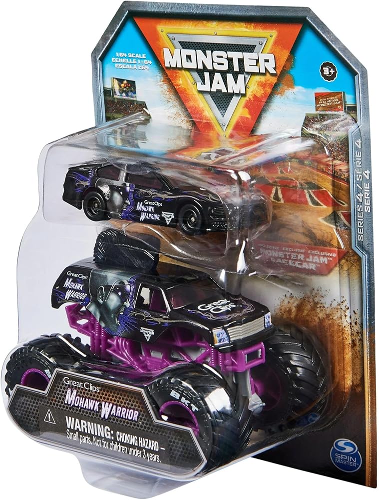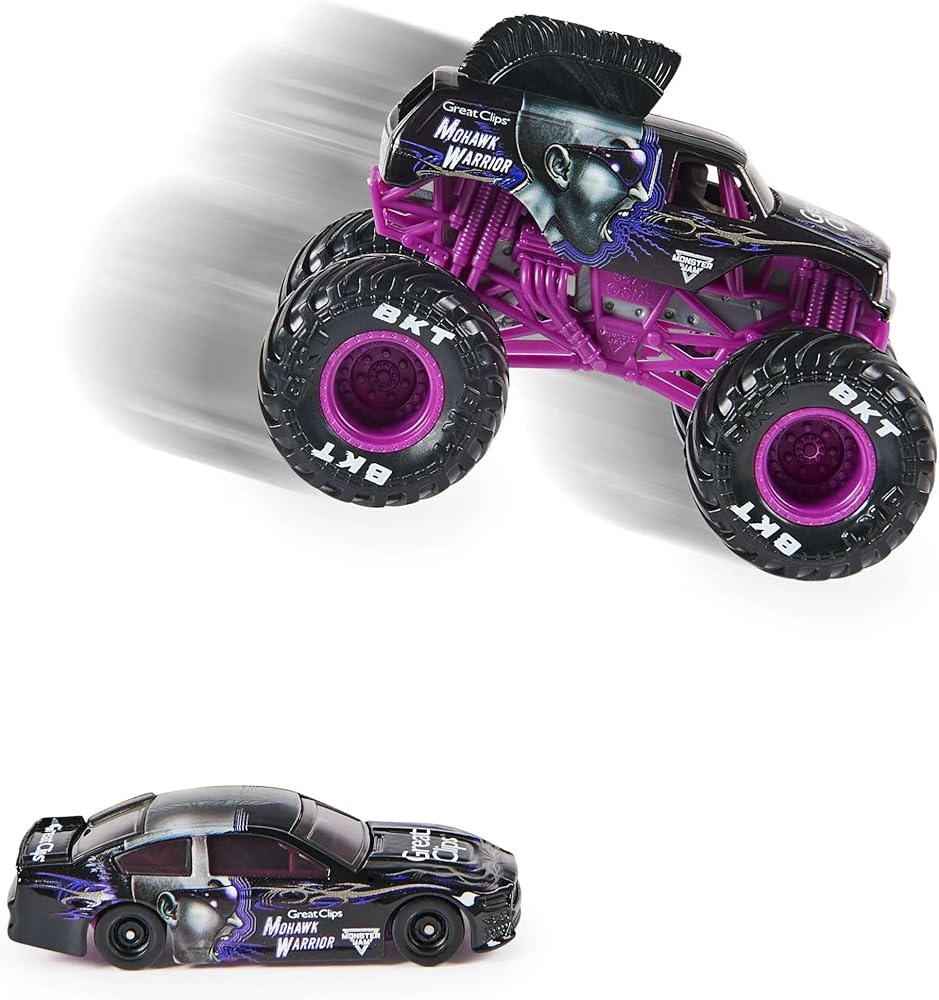 مونستر جام الرسمية بمقياس 1:64، قطعتين من شاحنة مونستر وسيارة السباق سلسلة 4 موهوك واريور، أرجواني