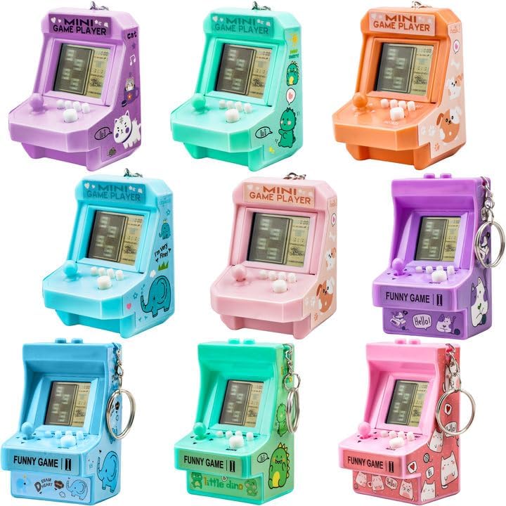 9 قطع Mixcolor لعبة فيديو سلسلة مفاتيح لعبة فيديو هدايا الحفلات صغيرة متعددة الألوان لعبة فيديو سلاسل مفاتيح كبيرة للأطفال في المدرسة وحفلات أعياد الميلاد والعطلات