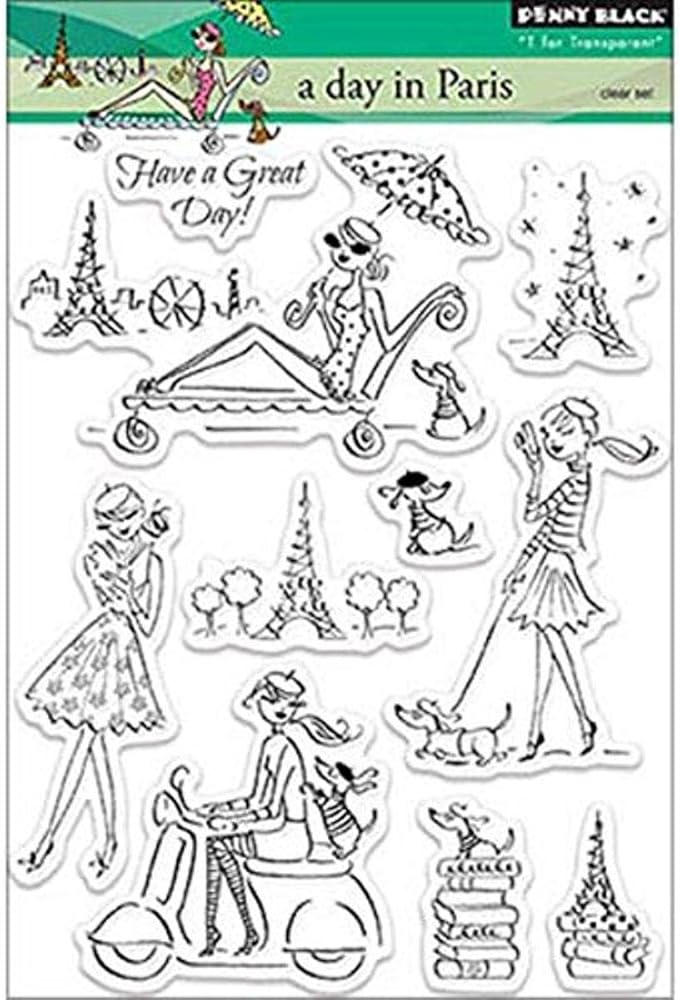 طوابع مطاطية مزخرفة باللون الأسود من بيني، يوم في باريس