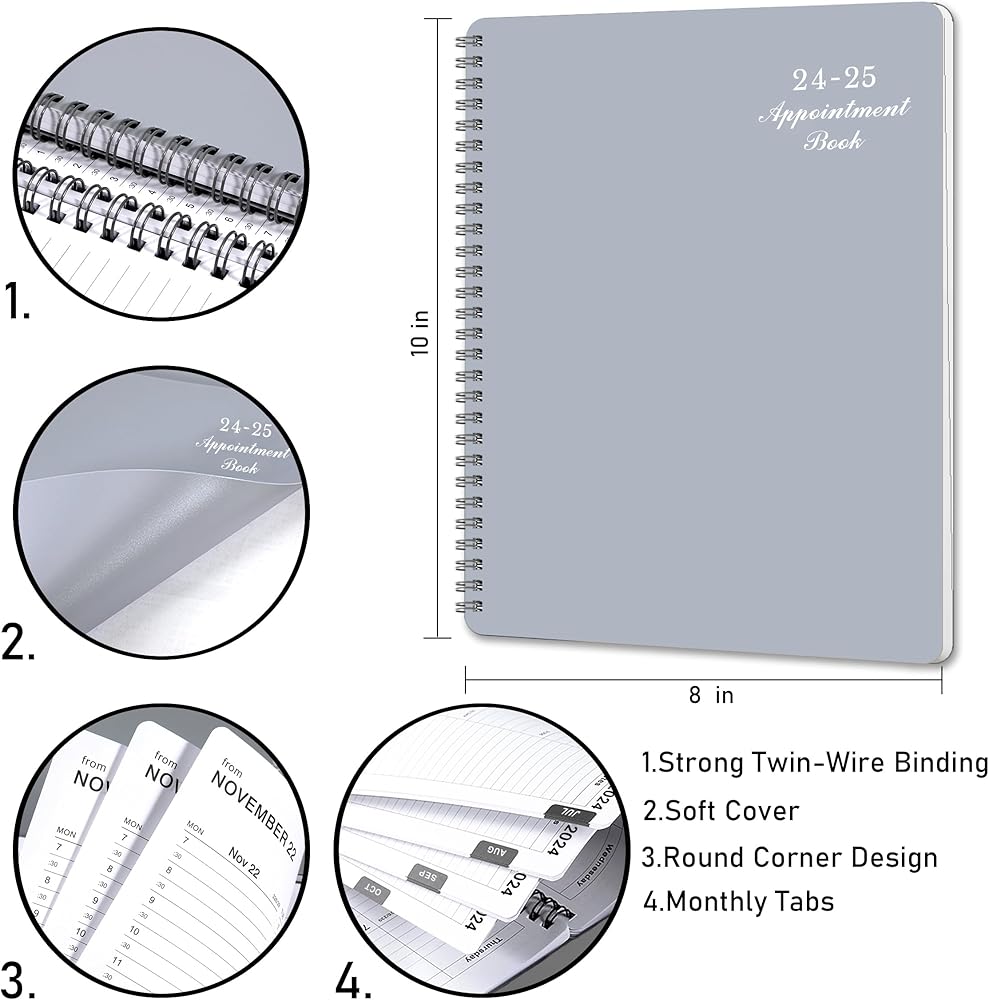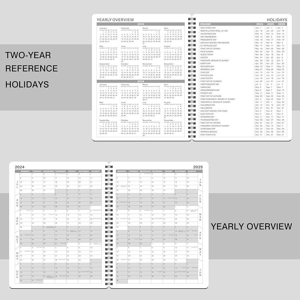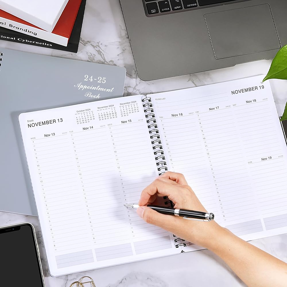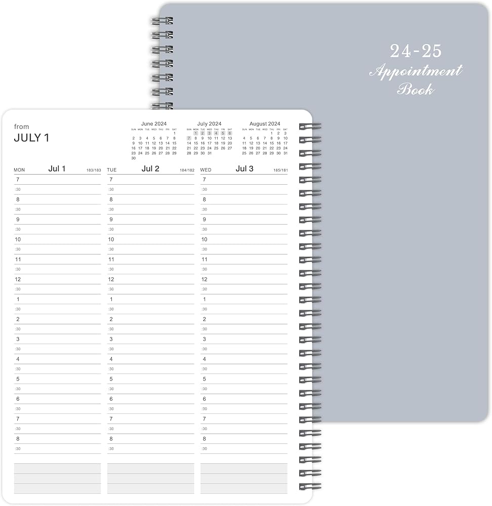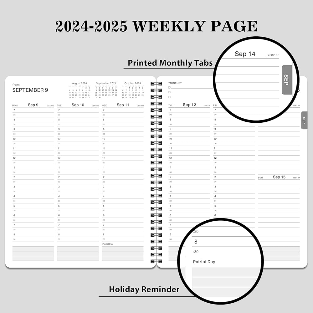2024-2025 كتاب ومخطط المواعيد الأسبوعية - يوليو 2024 - يونيو 2025، 2024-2025 مخطط يومي للساعة، 8 بوصة × 10 بوصة، فاصل نصف ساعة (30 دقيقة)، علامات تبويب مطبوعة، ربط قوي، زاوية مستديرة، ورق سميك
