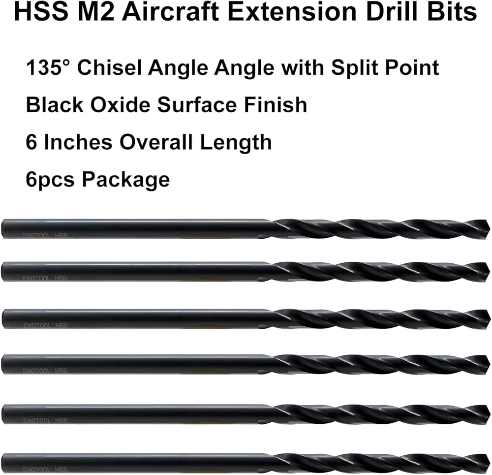 تُستخدم لقم الثقب الممتدة للطائرات لحفر ثقوب عميقة أو حفر ثقوب في الأماكن التي يصعب الوصول إليها. تتوفر قطع بطول إجمالي 6 بوصات و12 بوصة