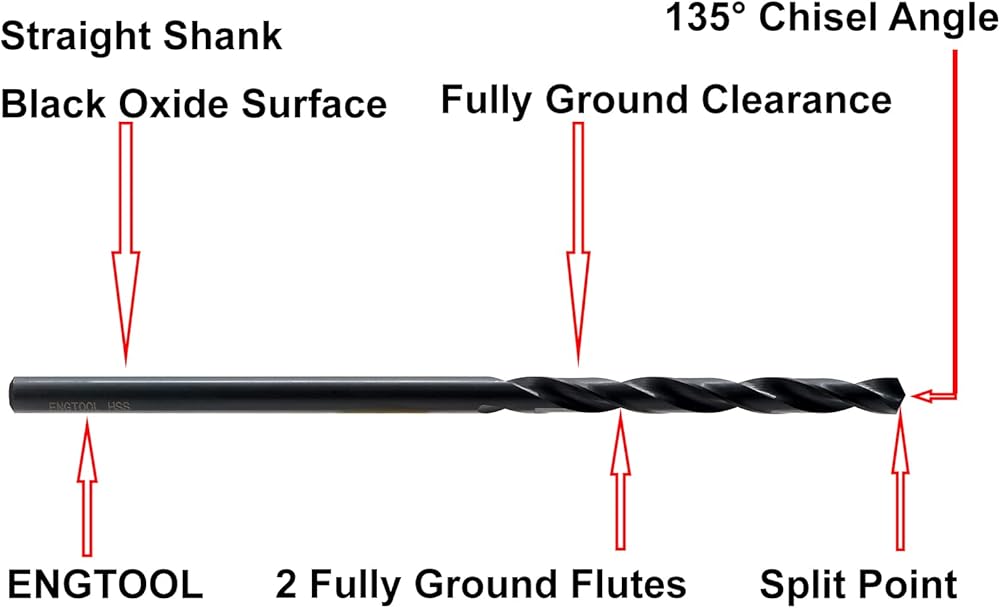 تتوافق جميع أبعاد الحفر والتفاوتات مع معايير الحفر ASME/ANSI B94.11M أو USCTI - معهد أدوات القطع بالولايات المتحدة (MCTI سابقًا). تتوفر أحجام كسرية بقطر 1/16 بوصة إلى 1/2 بوصة