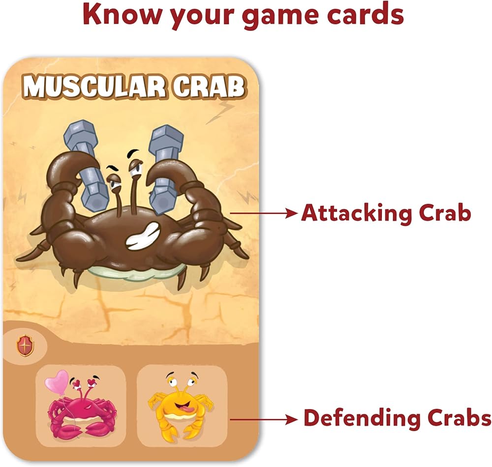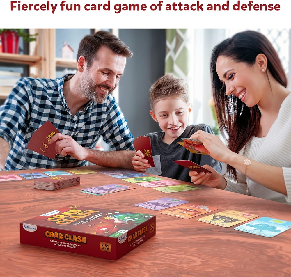 رائعة لجميع الأعمار: من السهل اللعب، Crab Clash رائعة للأطفال والمراهقين والعائلات والبالغين. لعبة البطاقات الاستراتيجية مناسبة للأعمار من 7 سنوات فما فوق ومثالية لليلة اللعب العائلية.