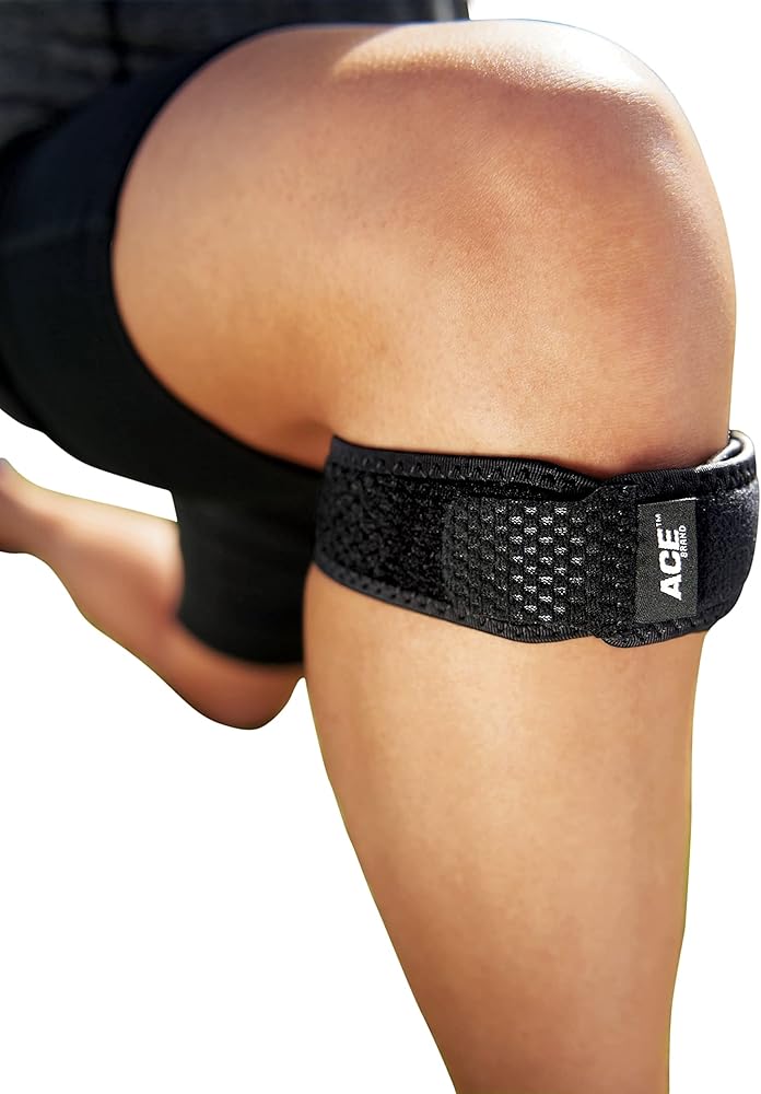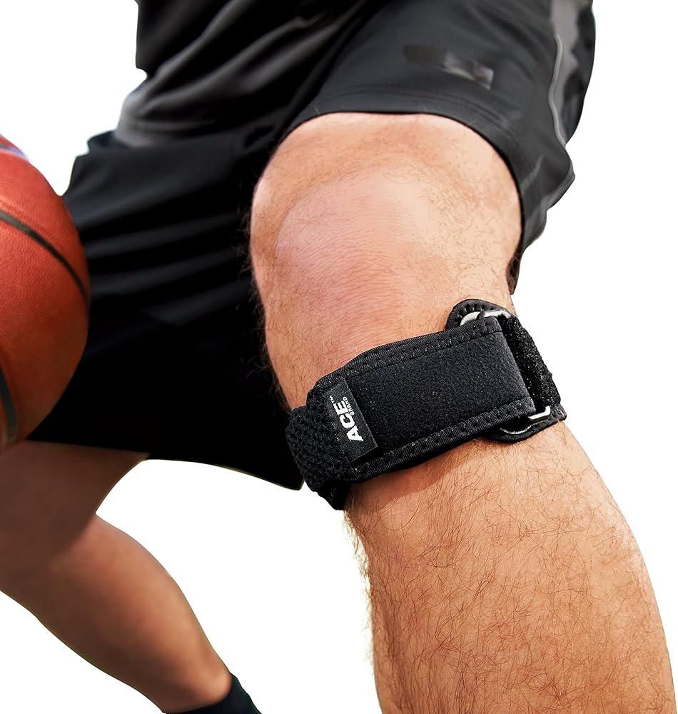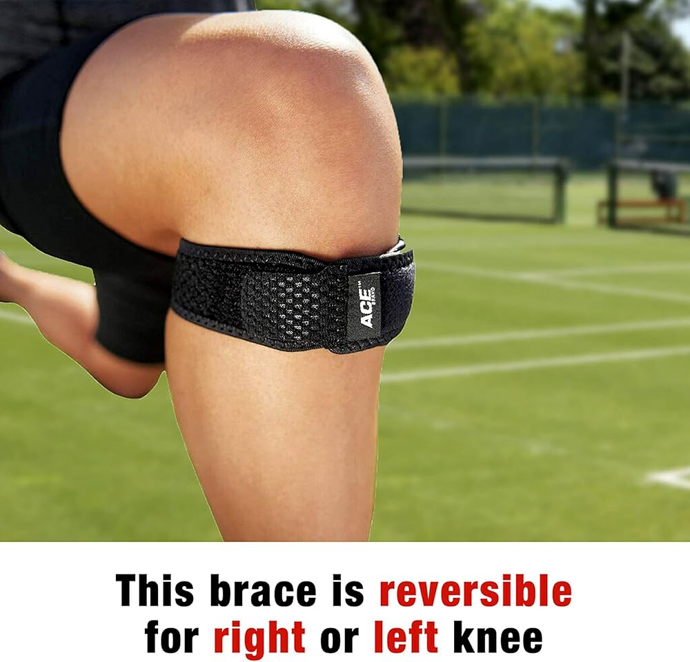حزام الركبة من العلامة التجارية ACE، قابل للتعديل، أسود، 1/عبوة (عبوة من قطعتين)