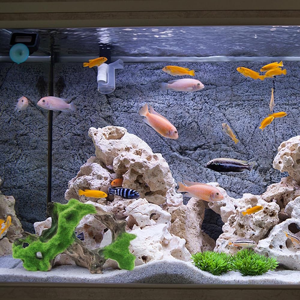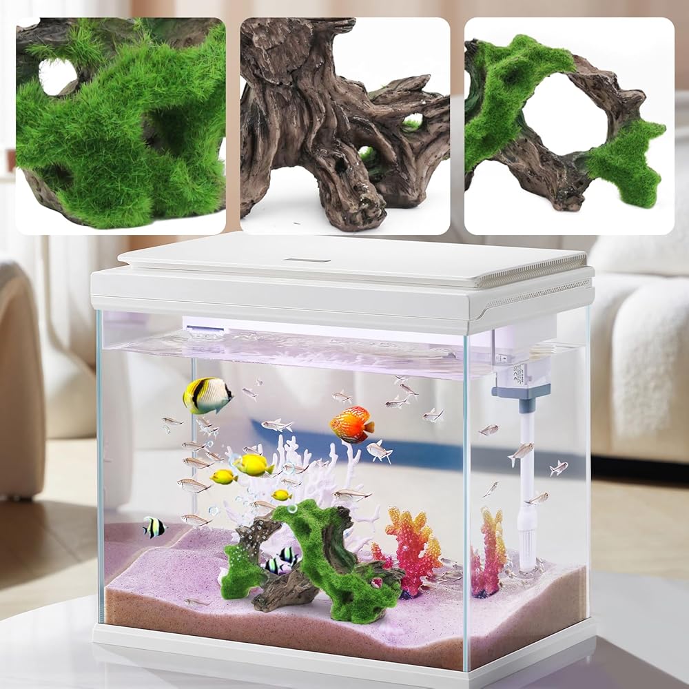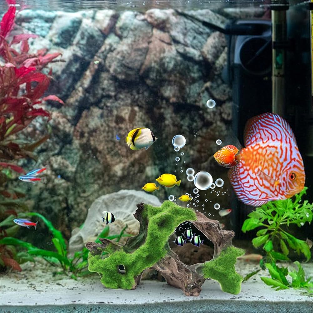 WishLotus حوض السمك الديكور الكهف، واقعية شجرة الراتنج شكل الجذر Driftwood ديكور حوض السمك دائم خزان الأسماك الزخارف الخشبية مع الطحلب لحوض السمك المناظر الطبيعية الحلي (أ)