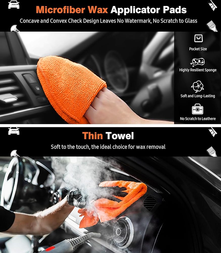 • [وسادة وضع الشمع]: تتميز وسادة توزيع المكياج المصنوعة من الألياف فائقة النعومة بتصميم جيب لسهولة التعامل معها. إنه متين، ويمكن غسله وإعادة استخدامه عدة مرات، وتضمن مادته الناعمة عدم خدش الجزء الداخلي للسيارة. فهو ليس مناسبًا لإزالة الشعر بالشمع فحسب، بل يمكن استخدامه أيضًا لمسح وتنظيف الأسطح الأخرى للسيارة، مثل الزجاج والجسم الخارجي.