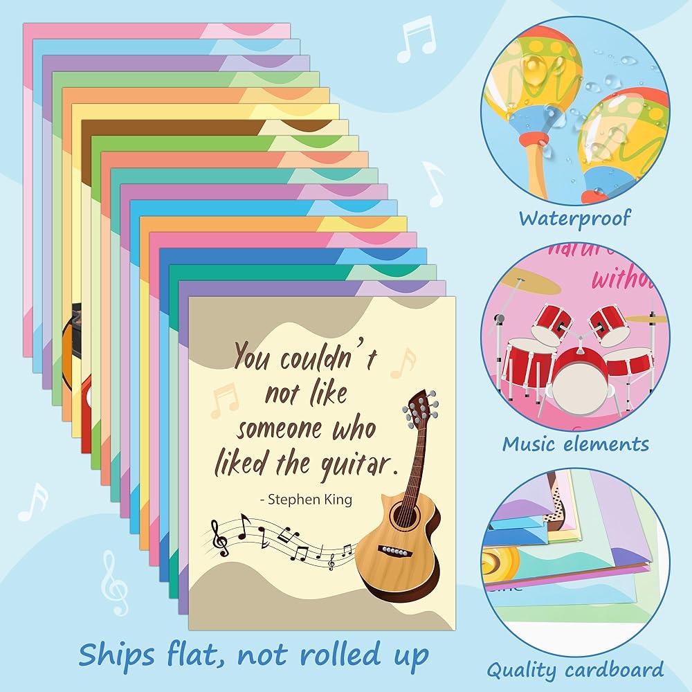 ملصقات موسيقى H1vojoxo للفصول الدراسية - 18 قطعة من ملصقات الفصول الدراسية الموسيقية لتعليم الموسيقى ملصق تحفيزي للفصول الدراسية ملصق الموسيقى الابتدائية موضوع الموسيقى التعليمية جدار الفن الطباعة للمدرسة الثانوية المتوسطة