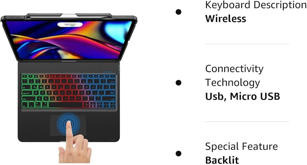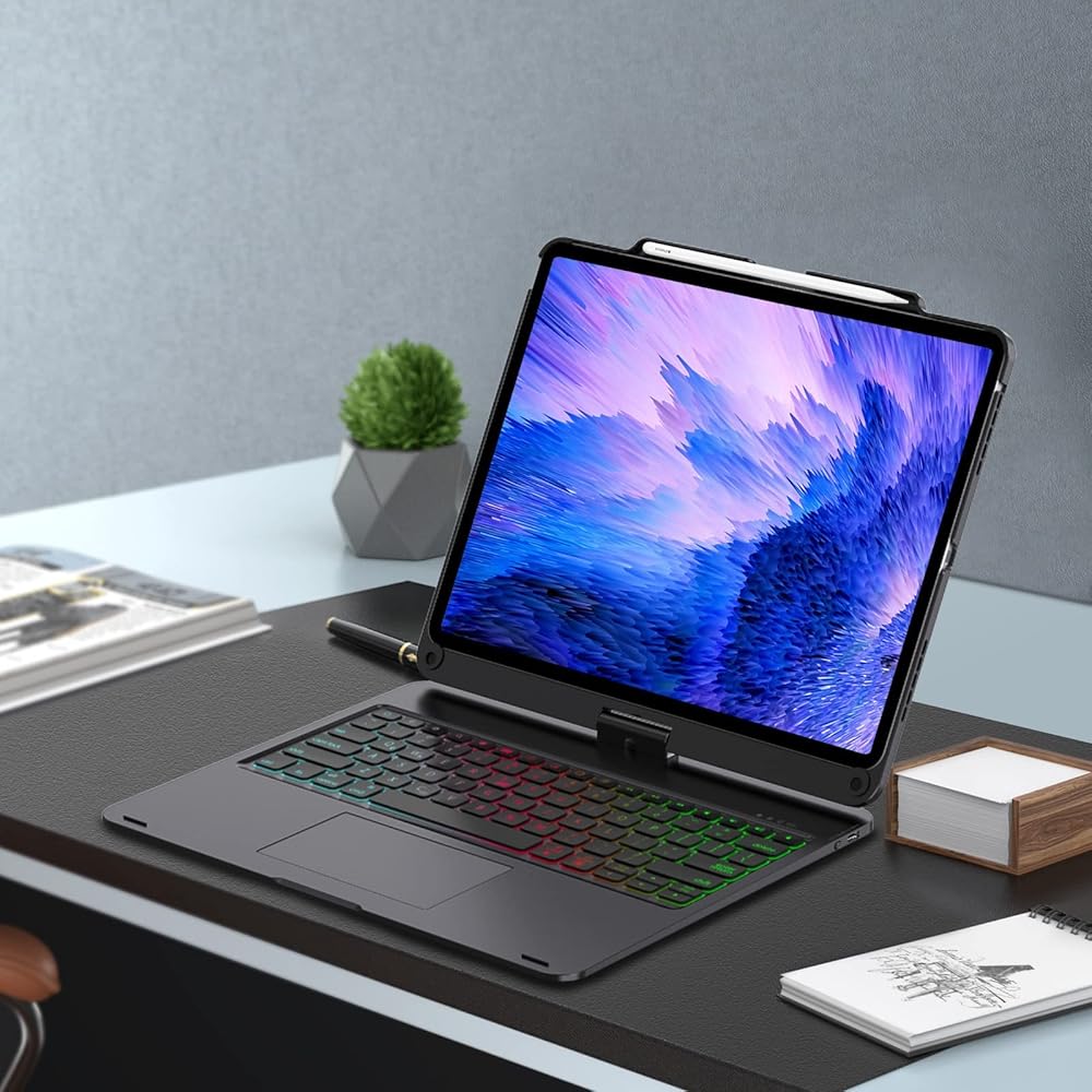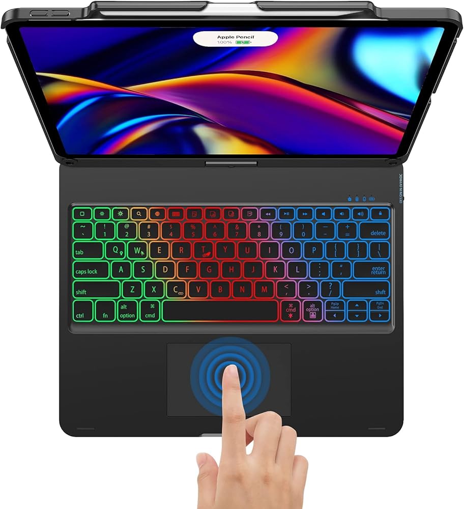 【لوحة مفاتيح لجهاز iPad Pro 12.9 مع لوحة تتبع دقيقة】مع لوحة مفاتيح iPad Pro 12.9 ولوحة تتبع متعددة اللمس، يمكنك التنقل بجهاز iPad الخاص بك بطريقة جديدة تمامًا دون الحاجة إلى ماوس خارجي وتحويل iPad Pro 12.9 إلى كمبيوتر محمول في غضون ثانية. قم بتحرير المستندات وتصفح الويب وإنشاء العروض التقديمية بسرعة لا مثيل لها، مما يجعلها مثالية للأعمال والمدرسة والسفر.