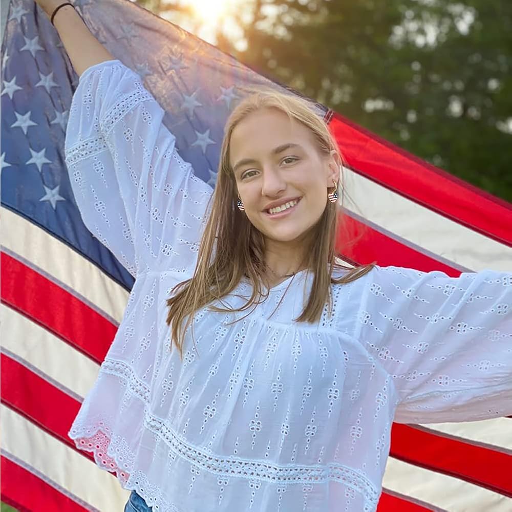 • 💝هدية أقراط الرابع من يوليو: هذه المجموعة تمثل هدية رائعة لأحبائك أو صديقك أو أحد أفراد العائلة الذين يحبون المجوهرات الوطنية أو يستمتعون بالإكسسوارات بأقراط حلقية. تأتي المجموعة في صندوق هدايا، جاهزة لتقديمها في أعياد الميلاد أو العطلات أو غيرها من المناسبات الخاصة