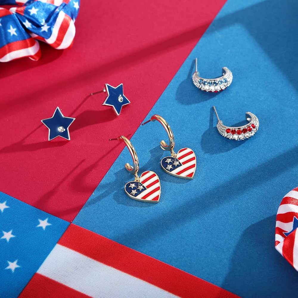 CLASSTZINT 3 أزواج عيد الاستقلال هوب أقراط للنساء الأحمر الأزرق الأبيض نجمة وقلب استرخى أقراط الرابع من يوليو أقراط هدية
