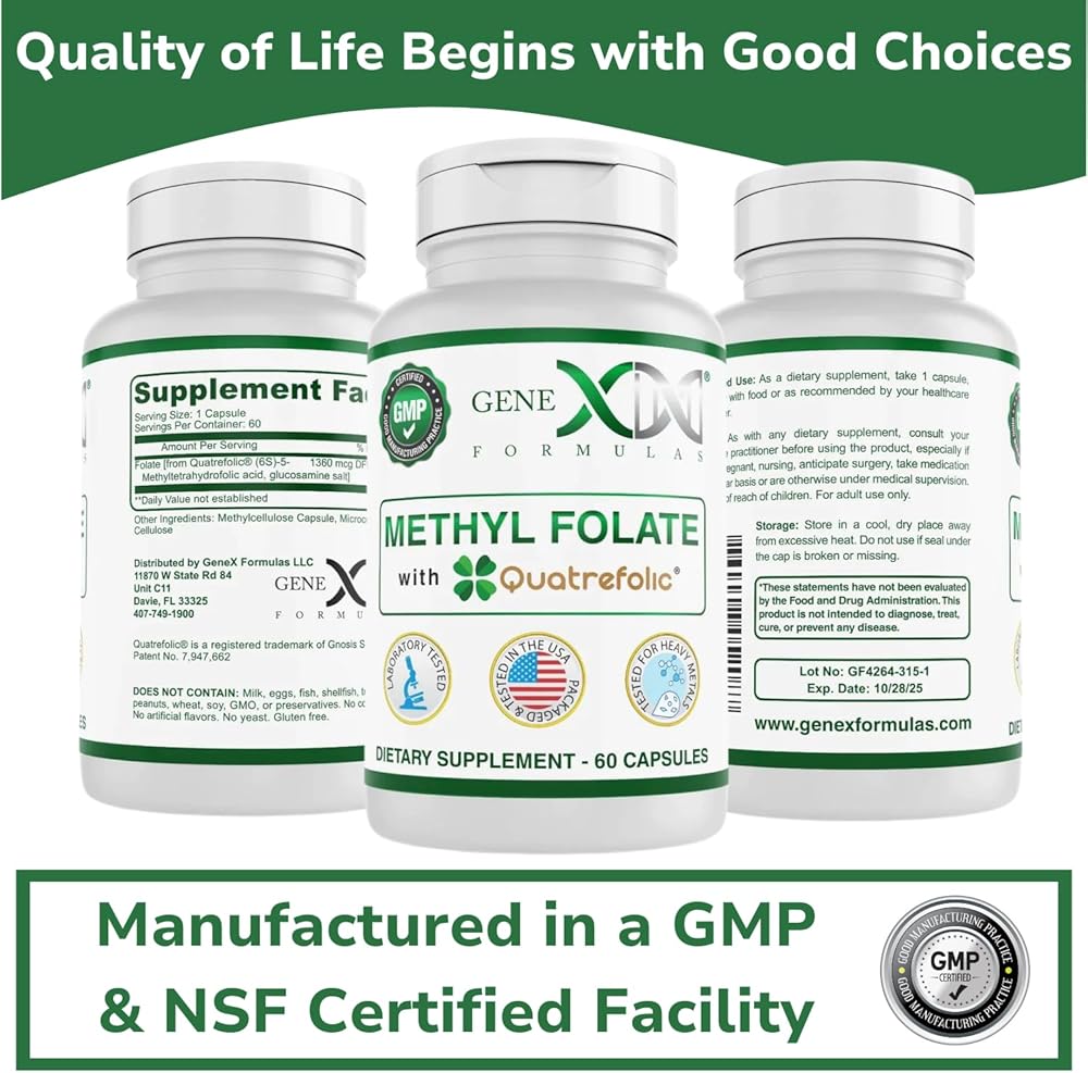 كمية تكفي لمدة 60 يومًا - تحتوي كل كبسولة من كبسولات ميثيل حمض الفوليك من Genex Formulas على 1360 ميكروجرام من حمض الفوليك من رباعي حمض الفوليك. كبسولاتنا سهلة البلع، ولا تحتوي على أي إضافات أو مواد مالئة غير ضرورية، وتحتوي كل زجاجة على 60 كبسولة. تناول كبسولة واحدة يوميًا لمدة شهرين في كل زجاجة!