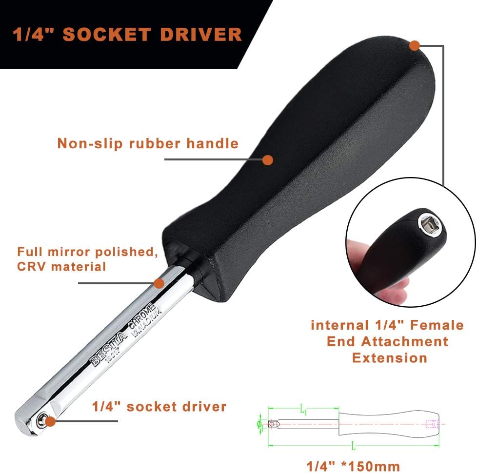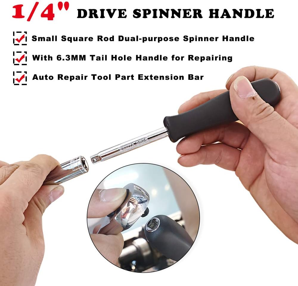مقبض دوار للمحرك مقاس 1/4 بوصة، مقبض السائق لإصلاح الصيانة، مقبض دوار مع تمديد المقبض المرن ومقرنة لقمة سداسية لتحسين تعدد الاستخدامات والتحكم