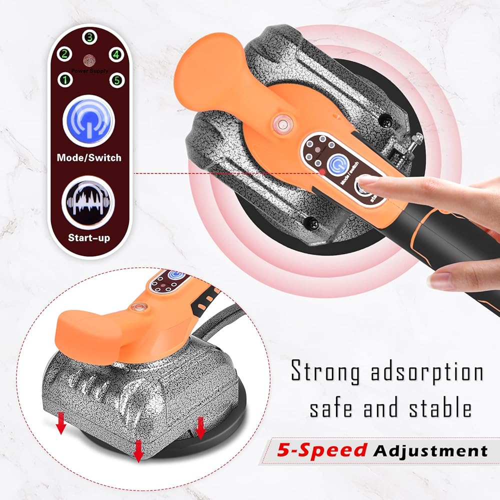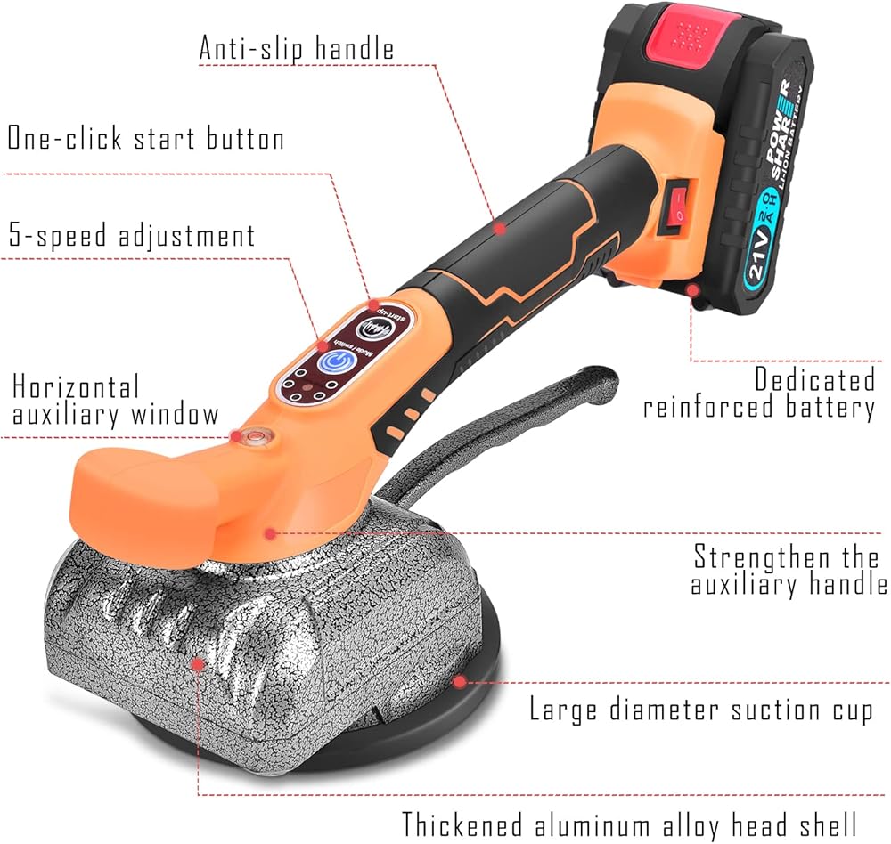 [5 Speeds Adjustable] The hand-held tile tiler has 5 levels of speed adjustable. The vibration speed can be adjusted freely according to the size of the tile body and the thickness of the plaster to meet your work requirements.