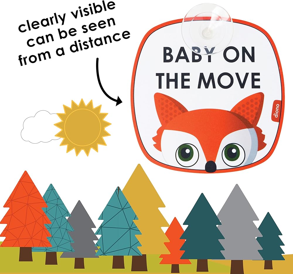 Diono Baby On The Move عبوتان من ملصقات نوافذ السيارة للأطفال مع أكواب شفط