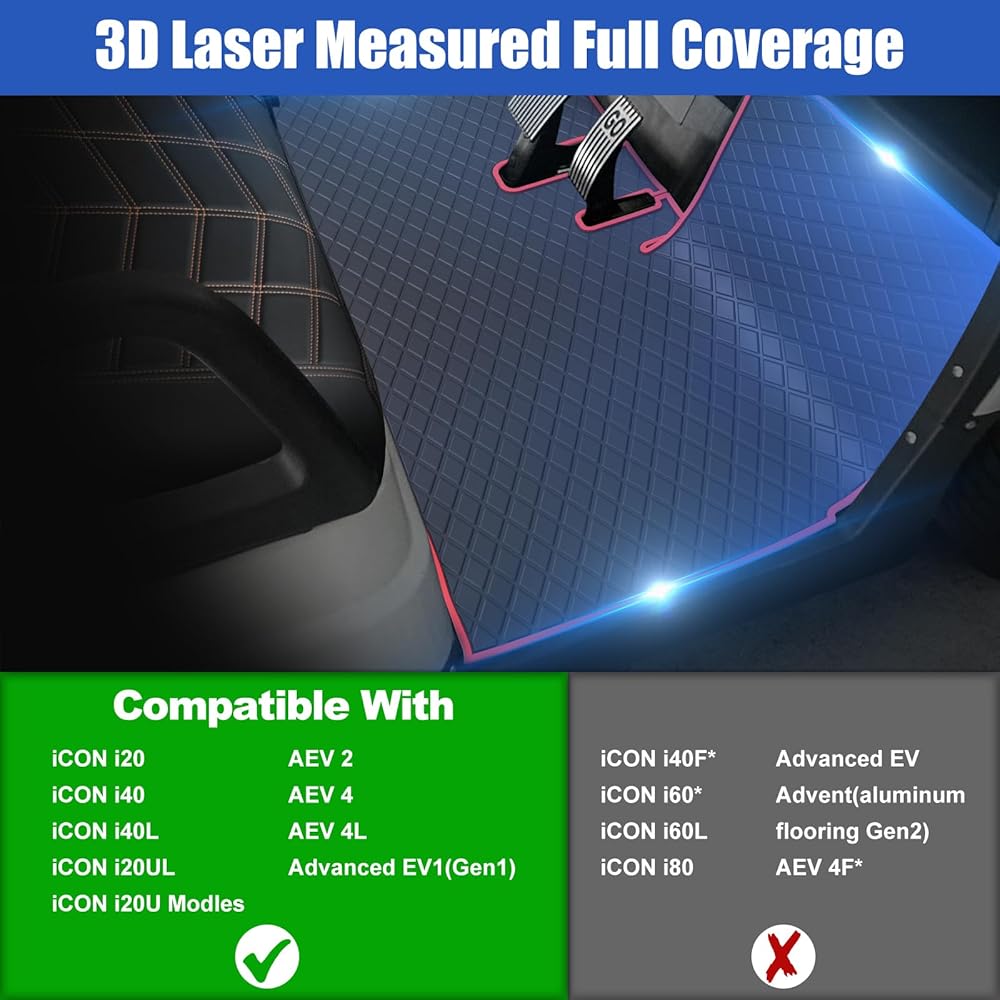 【PERFECT FITMENT】: The golf cart floor mat only fits ICON Carts (i20, i40) and Advanced EV (Gen1) (Notes: Please kindly double check your cart models before purchase.)