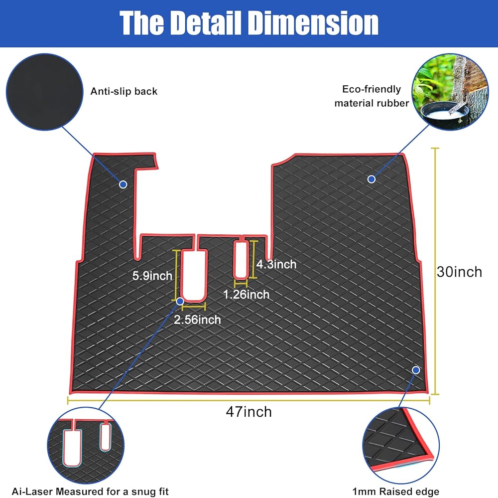 【CUSTOM DESIGN】: Using 3D electronic scanning and laser-measured to fit. Covering from the dash down to the base of the seat, fits the golf cart floor body perfectly. It will not interfere with brake pedal and accelerator. Ideal floor mat replacement compatible with ICON Golf Carts to refresh the factory floor.
