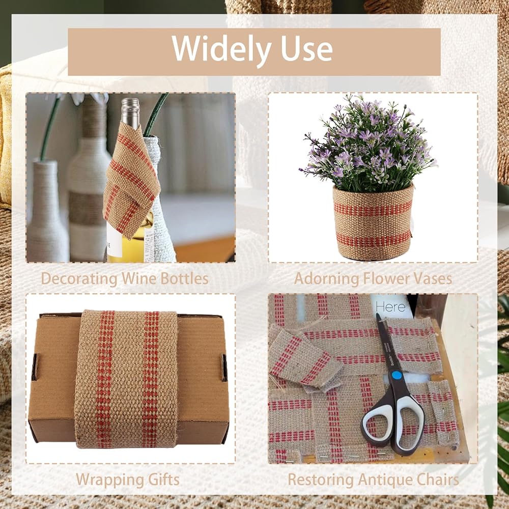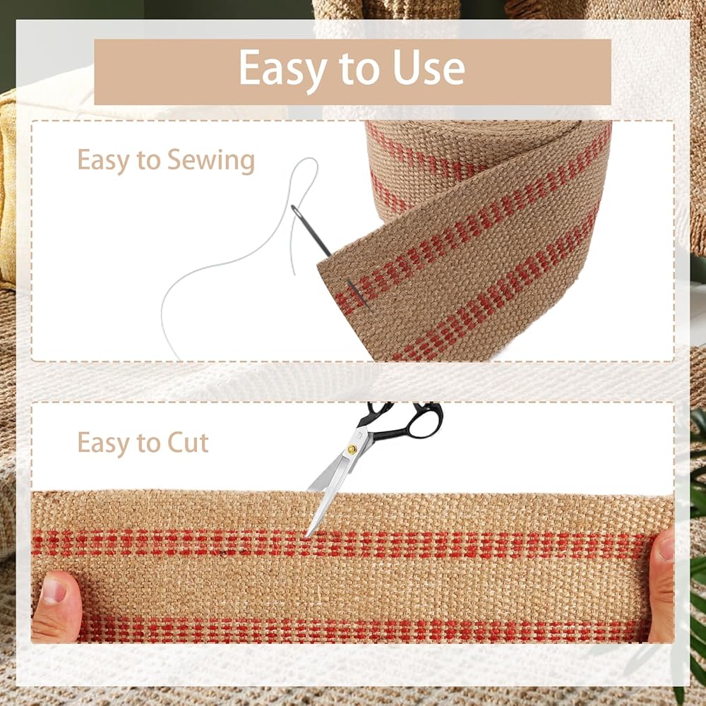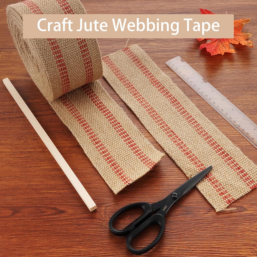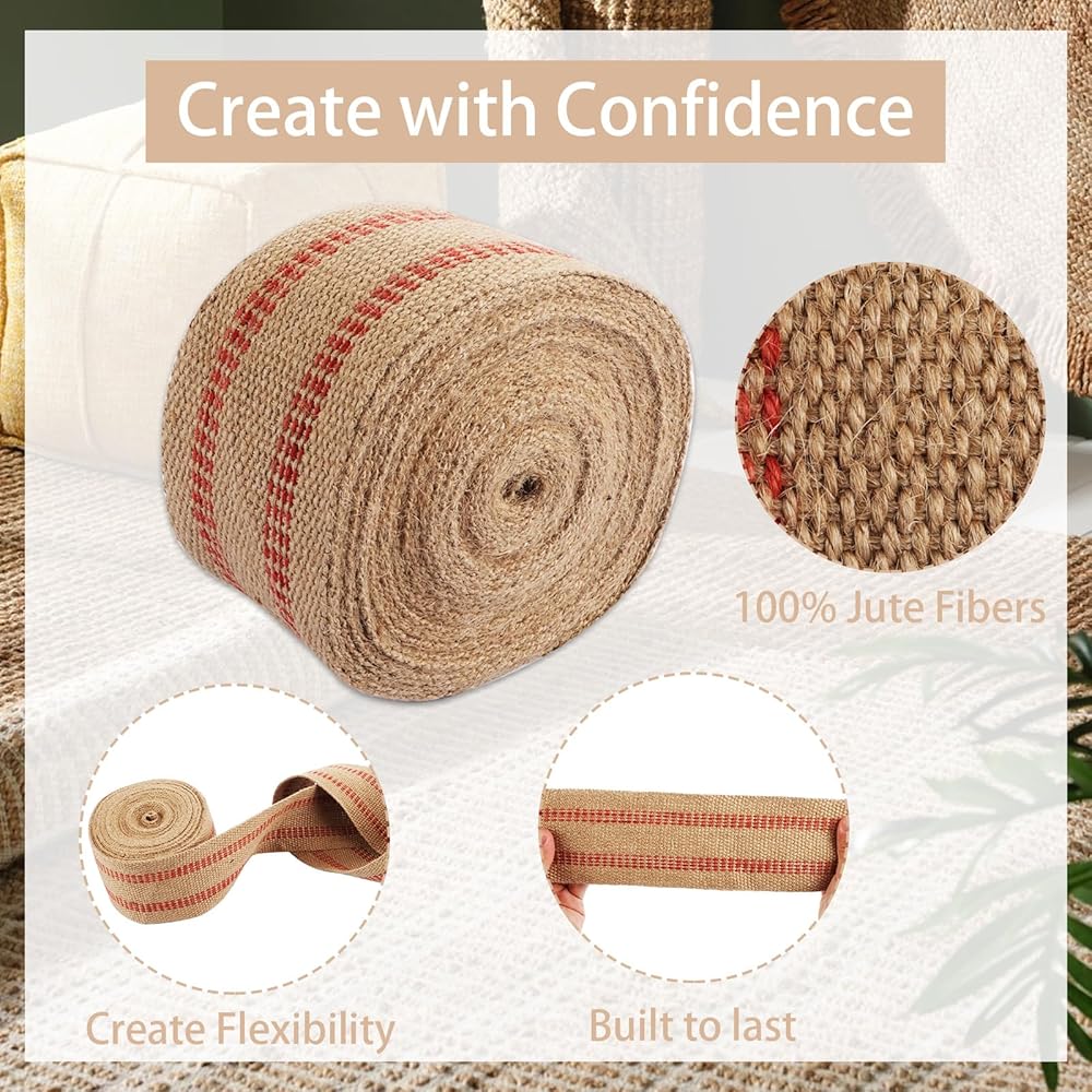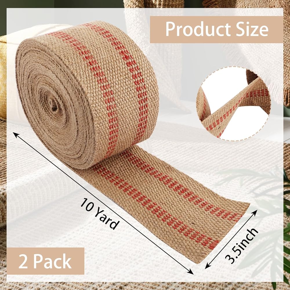 CYEAH 2 Pack Jute Webbing 3.5 Inch X 33 ft, 11 Yards Upholstery Craft Natural Jute Webbing Tape with Red Stripes.