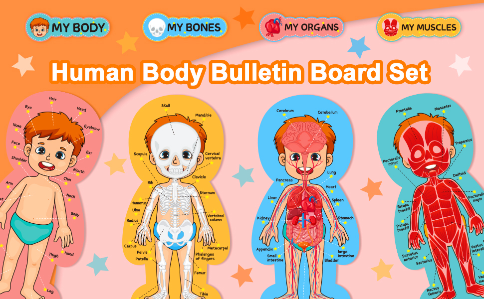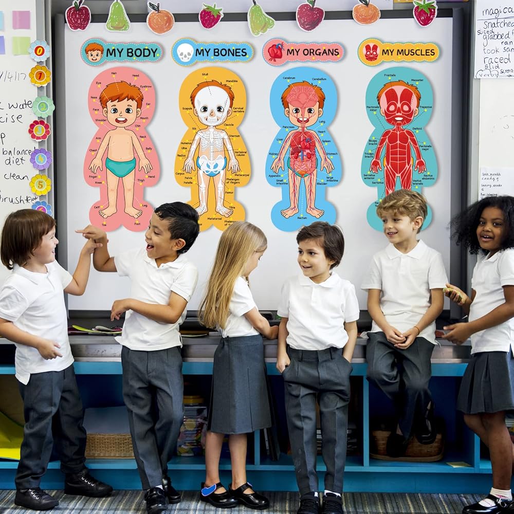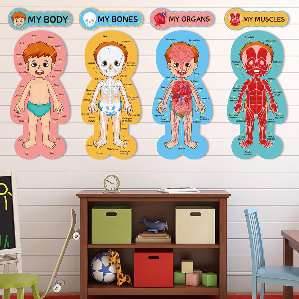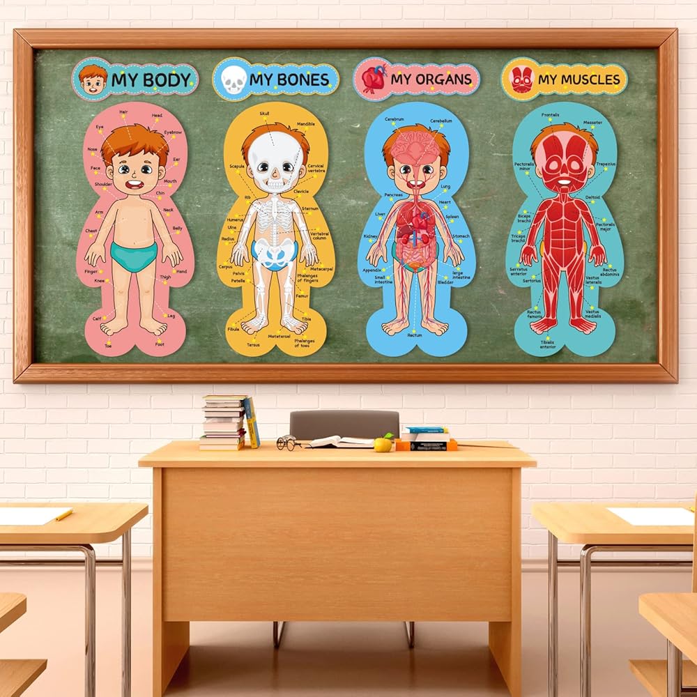 مجموعة لوحة إعلانات جسم الإنسان، ملصقات تعليمية تعليمية لجسم الإنسان، مقاس 11 × 24 بوصة، ديكور للفصل الدراسي للمعلمين، مخطط تعلم أجزاء الجسم للمدرسة، لوحة إعلانات للفصل الدراسي، ديكور المكتب